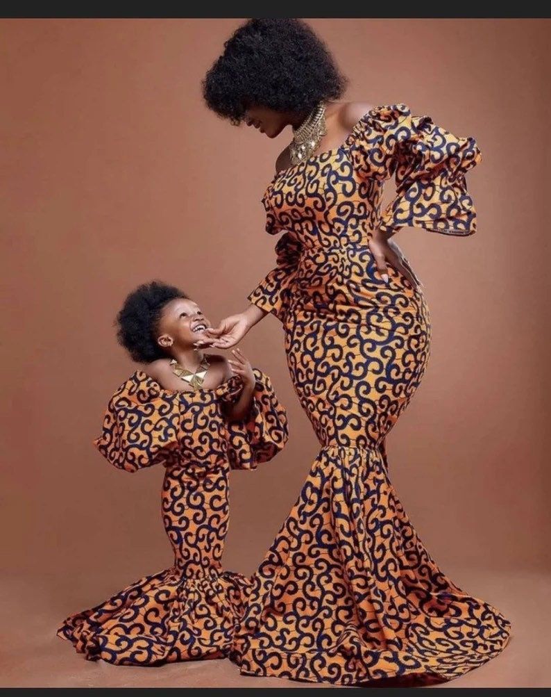 1. Coordinated Ankara Dresses: Choose Ankara fabrics with bold, colorful prints for both you and your daughter. You can have dresses made in the same pattern but in styles that suit each of your personalities. For instance, a midi dress for the mother and a cute frock for the daughter.