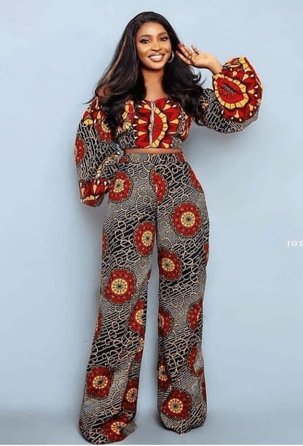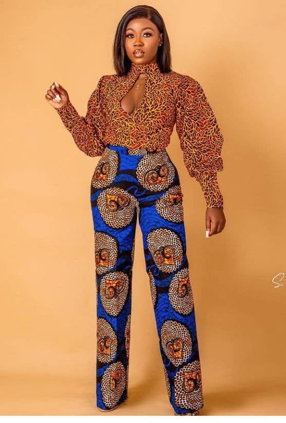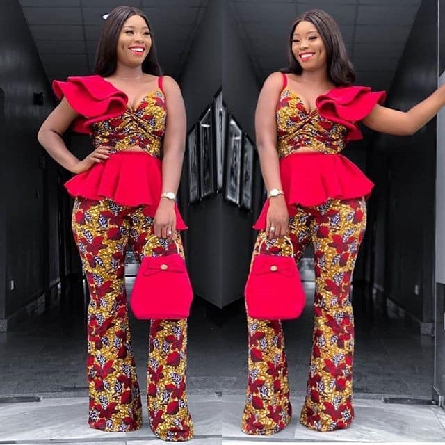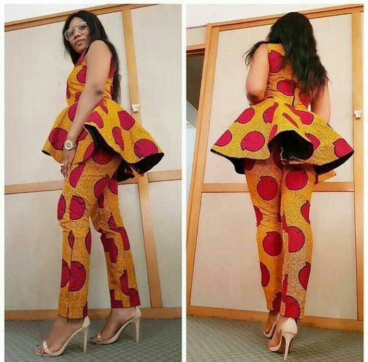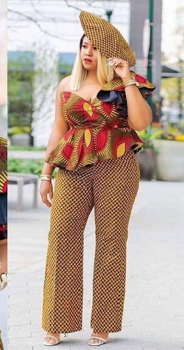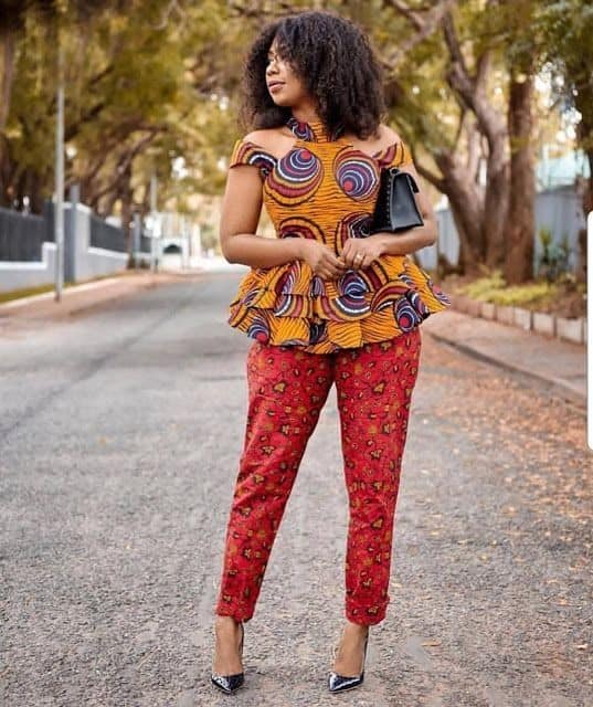 - Pair a peplum-style Ankara top with tailored trousers. This combination is chic and sophisticated, perfect for formal or semi-formal occasions.