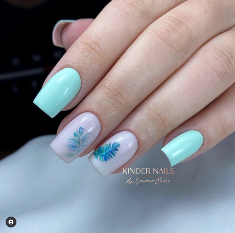 - Tropical Mint: Stamp or draw tropical designs like palm leaves or flamingos on a mint base, making your nails summer-ready.