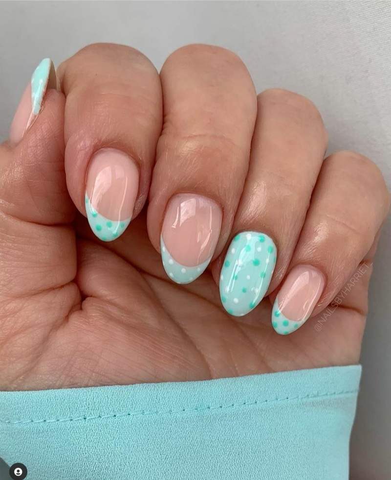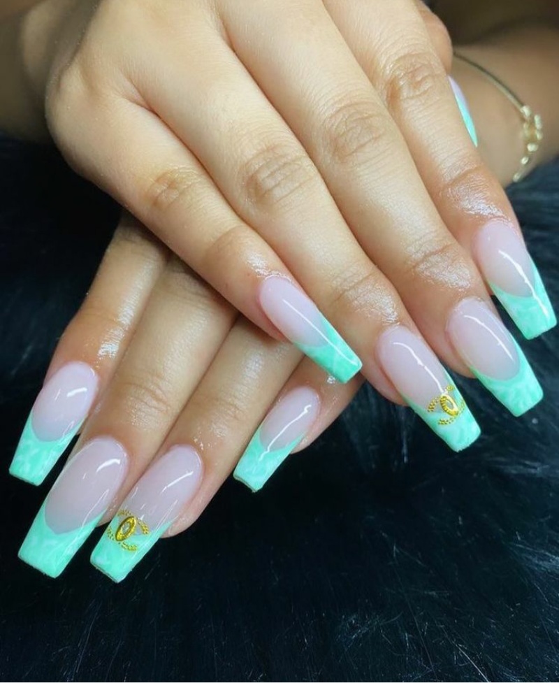 - Mint French Tips: Give the classic French manicure a twist by using mint for the tips. It’s a subtle nod to the trend, suitable for all occasions.