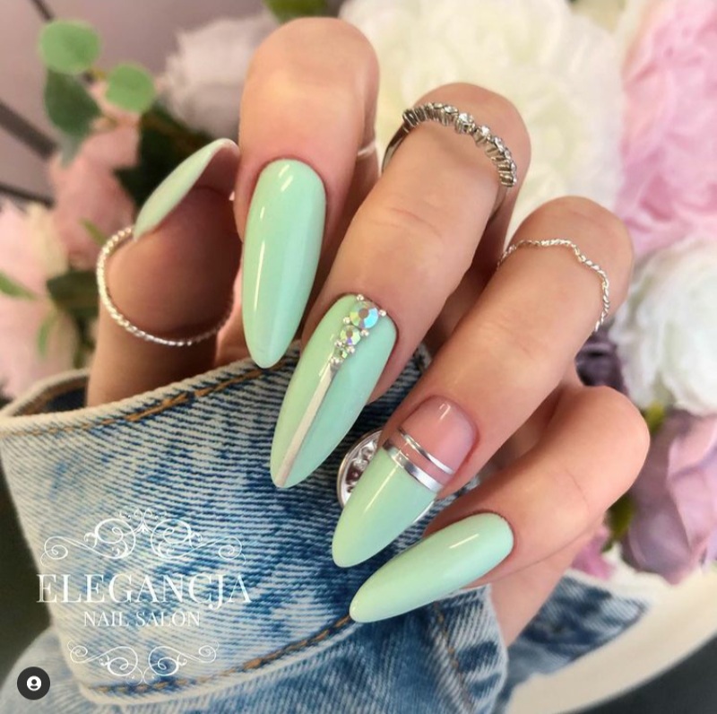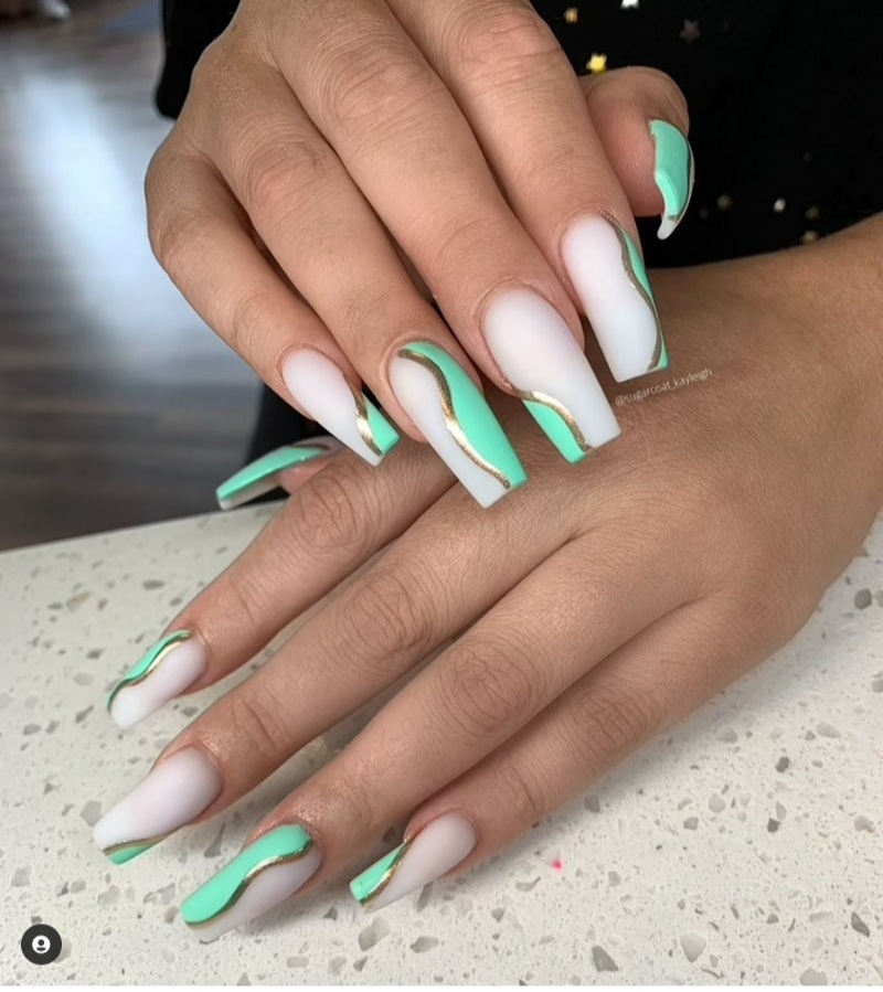 - Negative Space Mint: Use tape or nail vinyls to create patterns, leaving parts of the nail exposed. Fill in the design with mint for a trendy, edgy look.