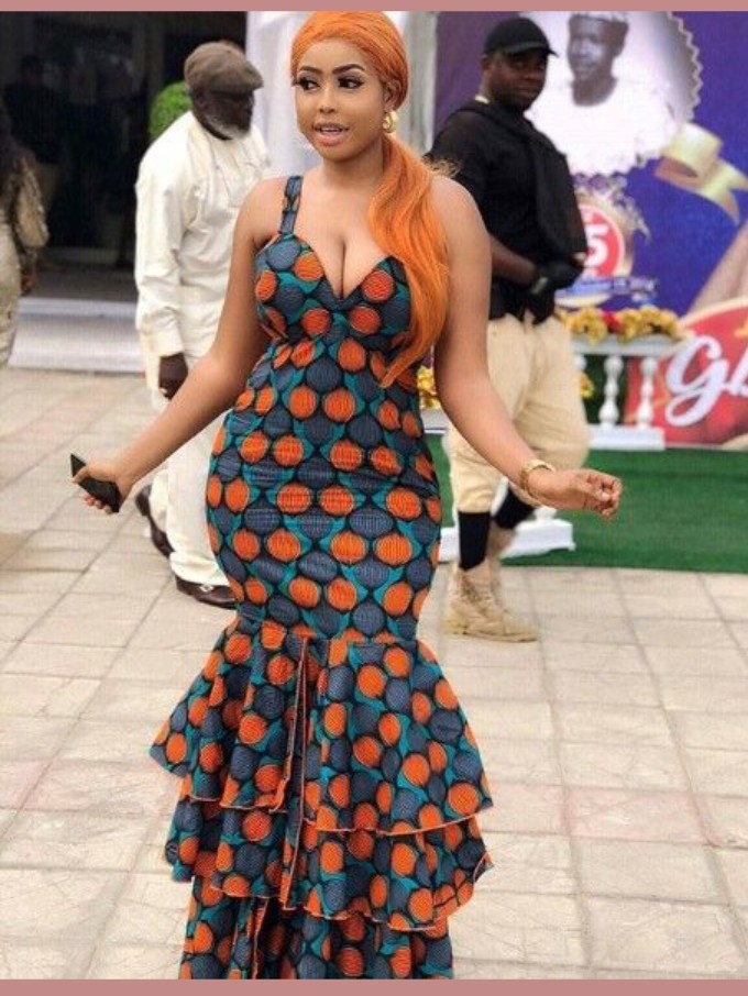 A layered ruffle dress in Ankara fabric adds volume and a touch of femininity to your look, perfect for making a grand entrance.