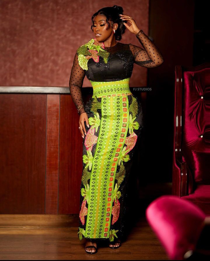 A mermaid-style Ankara dress that fits snugly through the body and flares at the knees is a captivating choice for formal events.