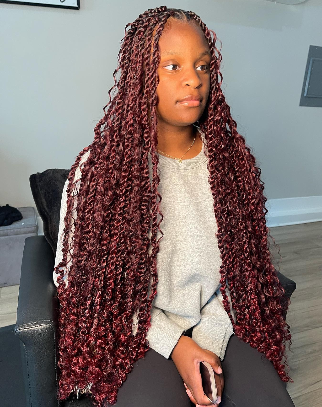 Passion twists are a captivating hairstyle that joins the ranks of faux locs and traditional twists. What sets them apart is the use of synthetic Water Wave or Bohemian Curl extensions, which create a non-uniform curly texture that resonates beautifully with African-American hair types. This texture not only feels more natural but also embraces the slight messiness required for the effortlessly chic Bohemian look.