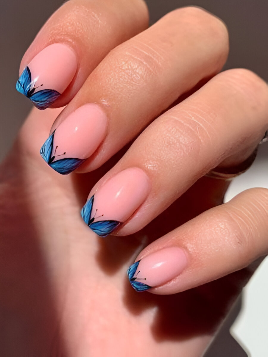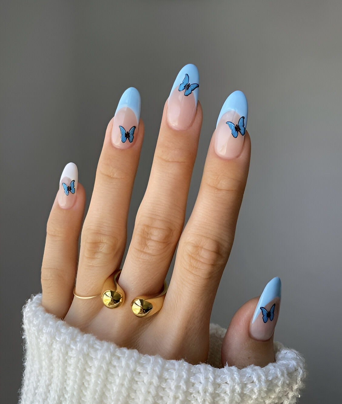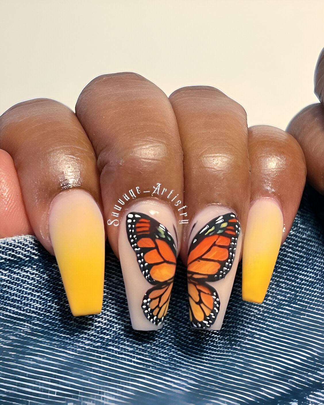 Create a mesmerizing gradient effect on your nails, with butterfly tips transitioning through different shades.