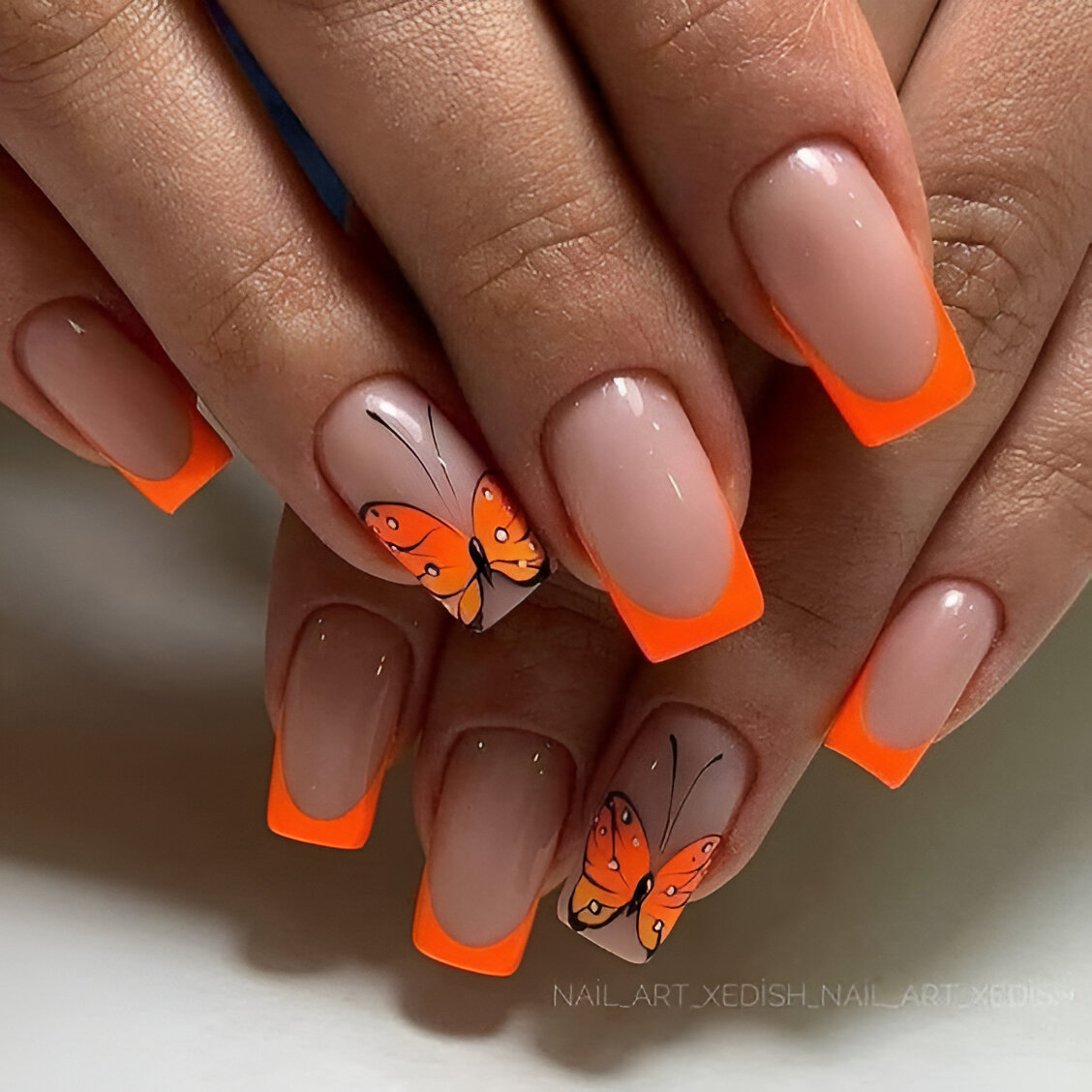 Embrace your wild side with vibrant neon butterflies dancing across your nails.