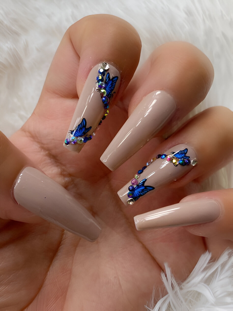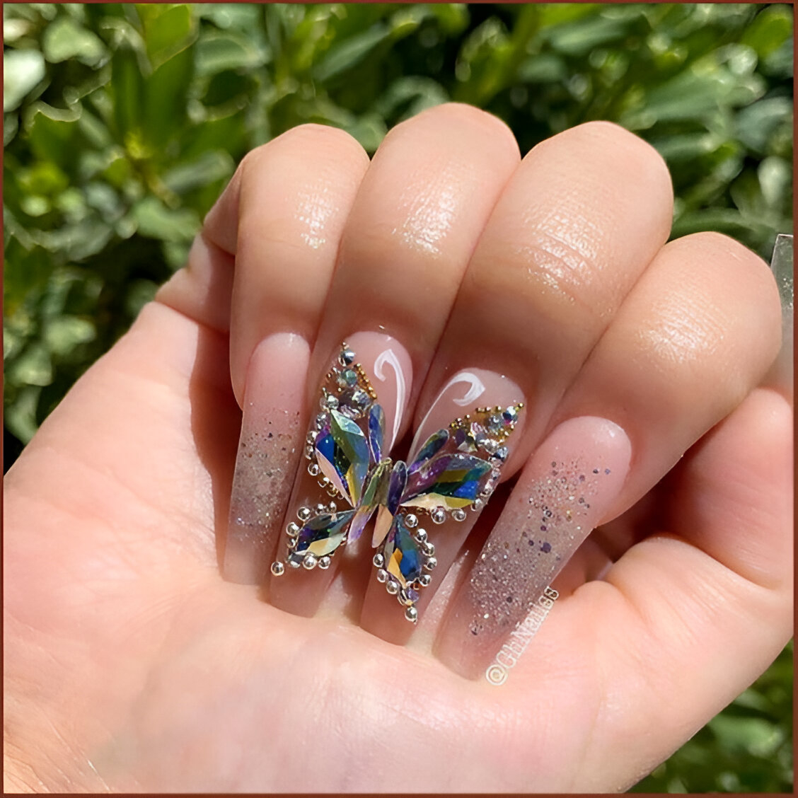 Add dimension and flair to your nails with 3D butterfly accents that seem ready to take flight.