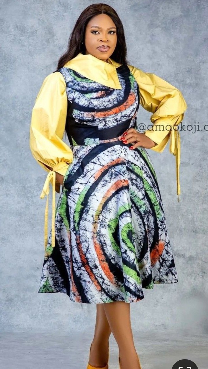 2. Flared Ankara Dresses for a Fun Twist: Ideal for social gatherings or weekend outings, a flared Ankara dress adds a playful yet elegant touch. The flounce and flair offer comfort and style, making it a go-to choice for stylish wives.