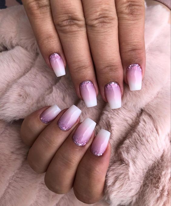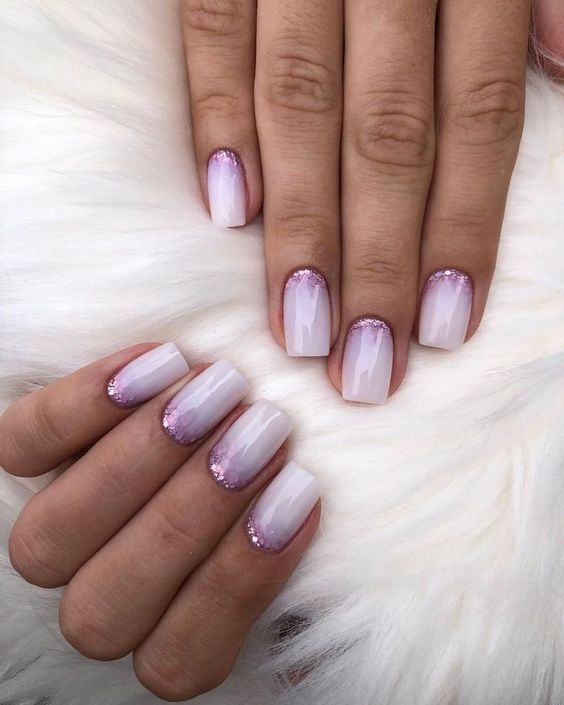Glitter French manicures are a quick and easy way to add sparkle to your nails. It can be done with a glitter base and a colourful tip or a simple base and a glitter tip. In either case, it adds depth to the classic white and baby pink look.