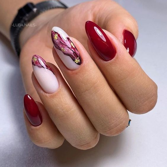 Fruit nail art is ideal for those who want to express themselves uniquely and colourfully. This hand-painted finish with cute tiny strawberries is adorable. You can depict this cuteness on your nails by using various techniques and various fruits to your taste.