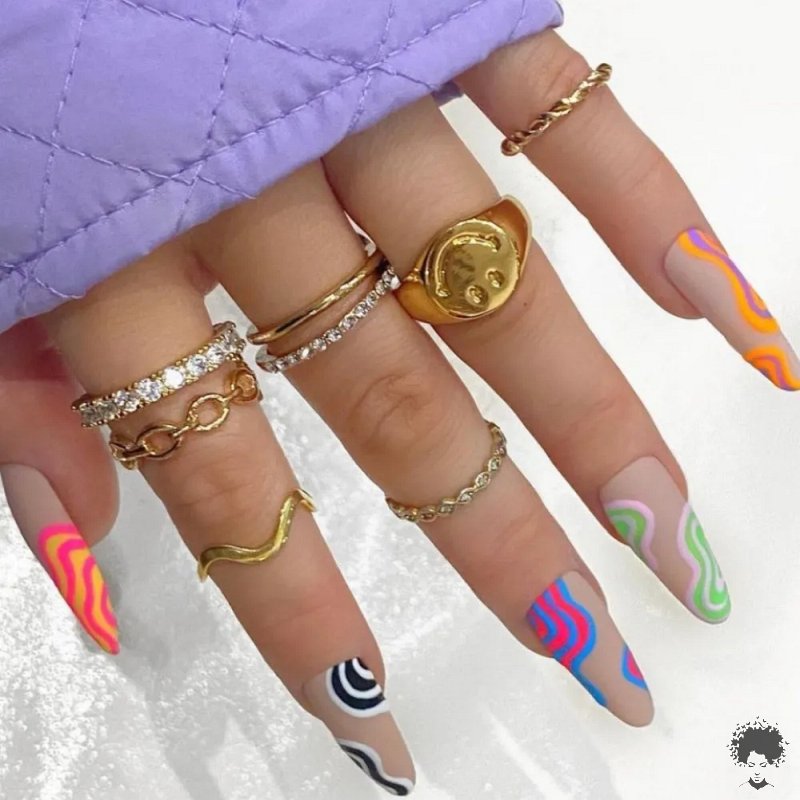 J’aime cette tendance des ongles parce qu’elle est si unique et qu’elle canalise la créativité intérieure. Les ongles abstraits impliquent des gribouillis, des illustrations d’art, des points et bien plus encore.