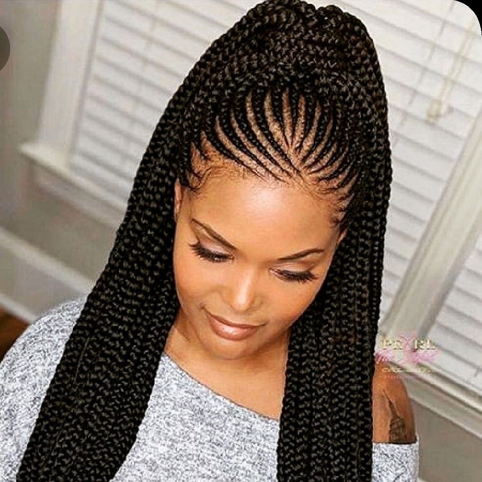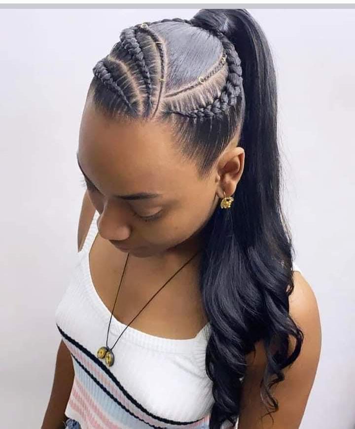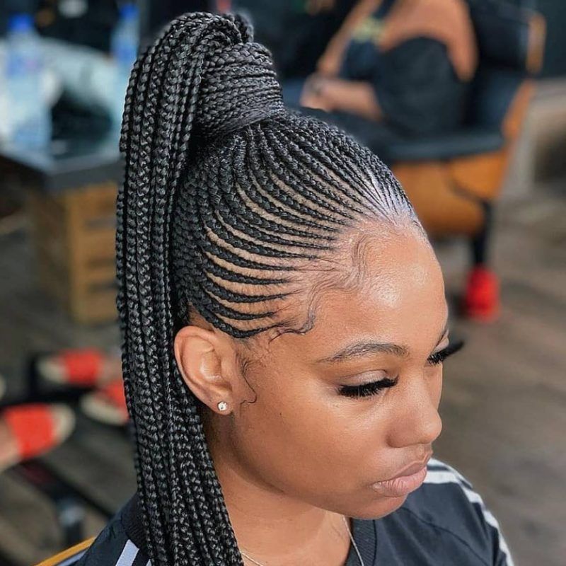 3. Ghana Weaving Ponytail: Elevate your look with a stylish high ponytail created with Ghana weaving braids.