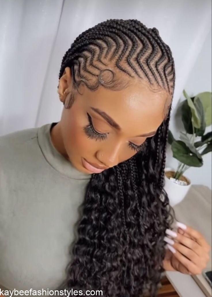 9. Ghana Weaving with Curly Ends: Incorporate curly or wavy ends into your Ghana braids for a glamorous touch.