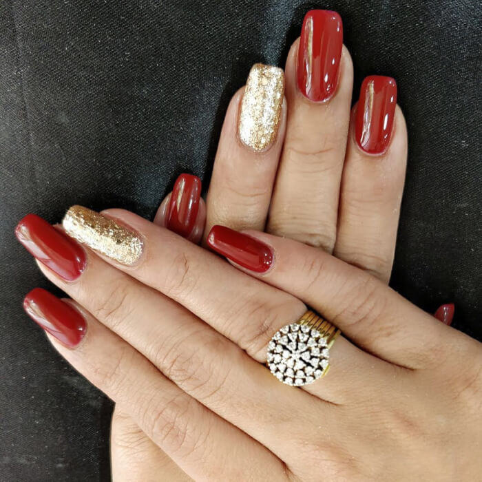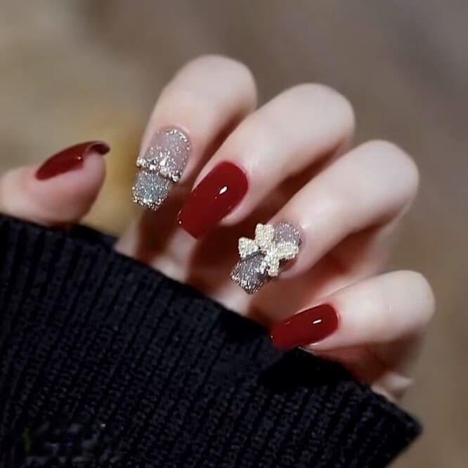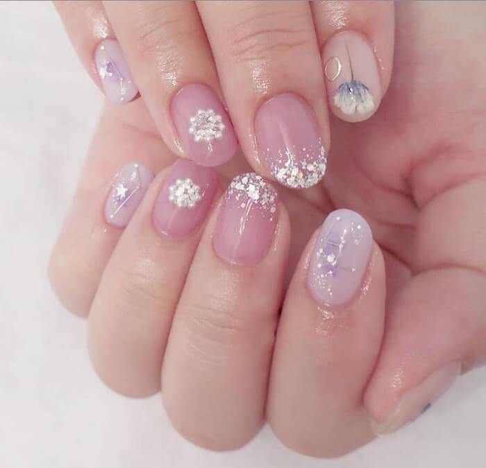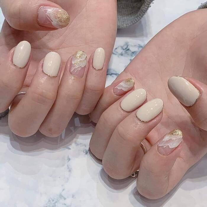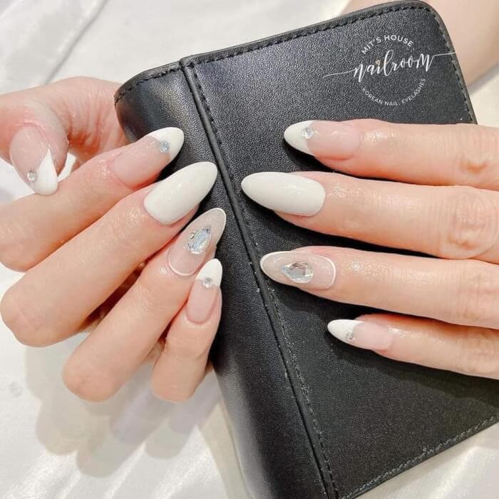 Usually, brides will extremely love white tones to coordinate with pristine wedding dresses, so a beautiful nail design with white tones is a choice not to be missed. Just a simple white paint color can achieve a high level of sophistication. And if you want to have a break in white tones, you can use gel polish to paint more textures on 1 or 2 fingers and your hands have become much more special.