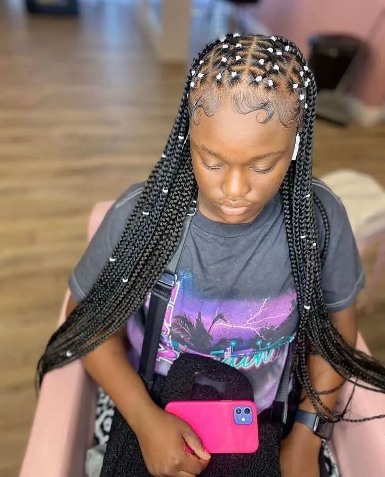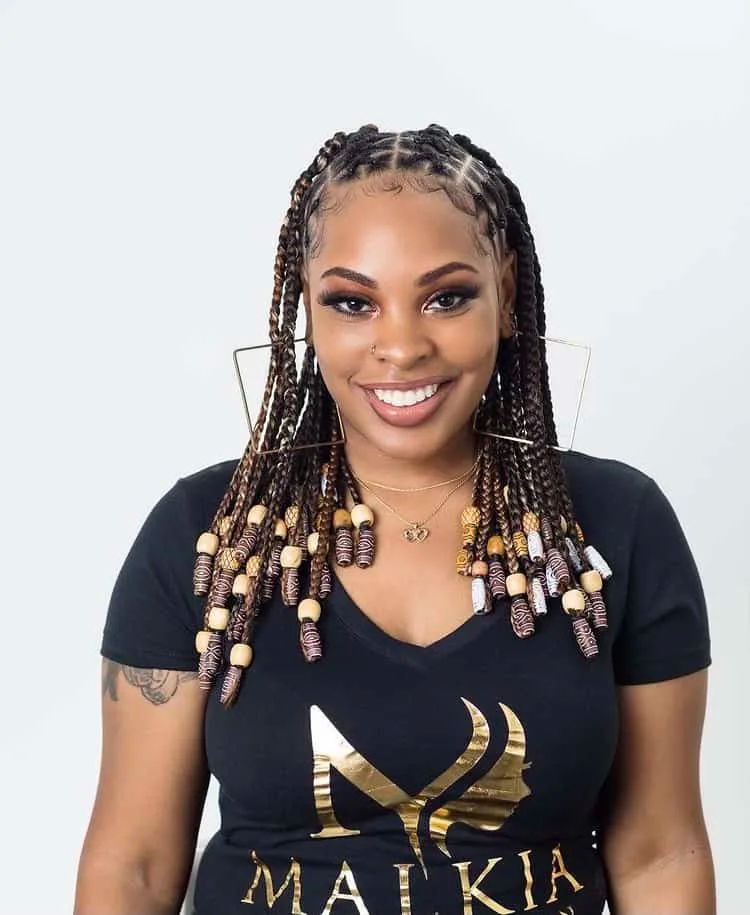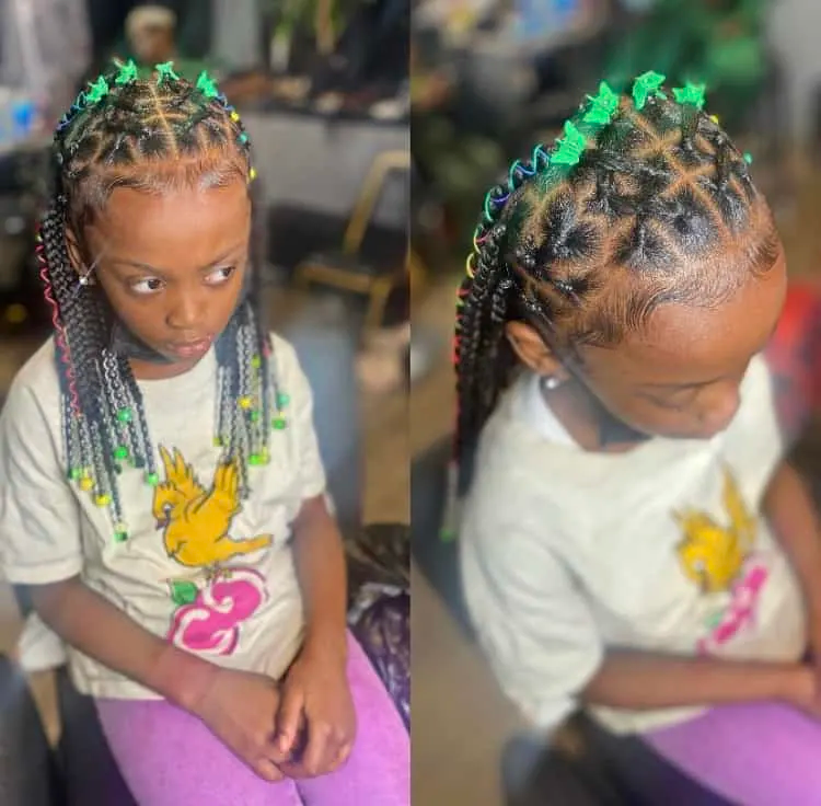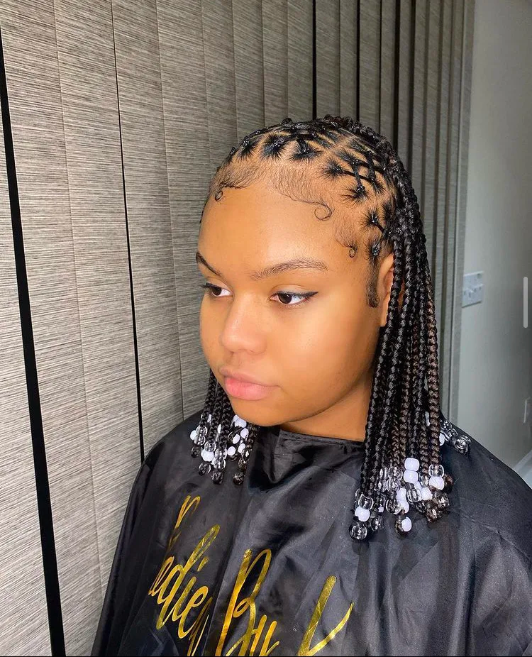 - Beaded Beauty: Criss-cross braids adorned with beads at the ends.