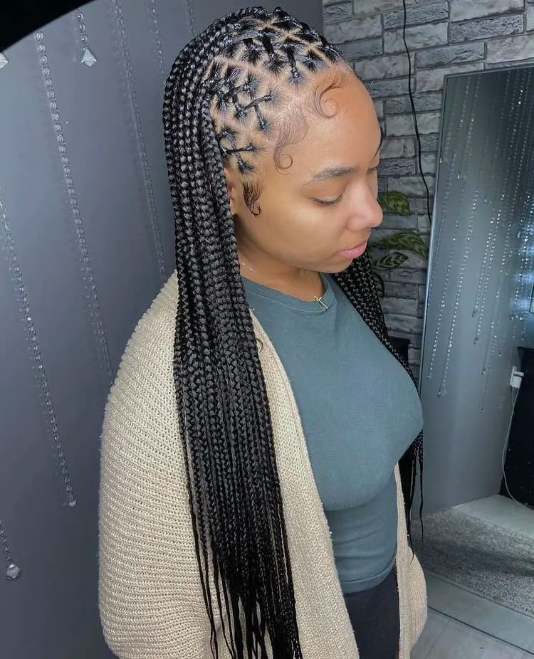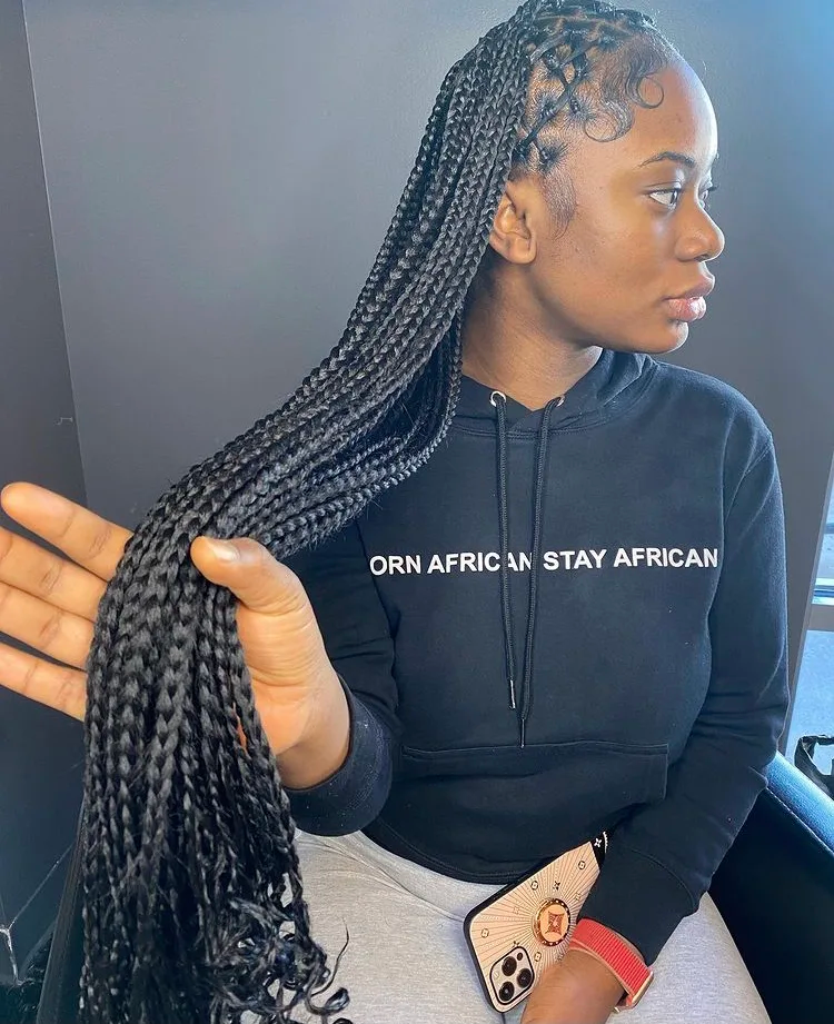 - Experiment with Lengths: Knotless braids offer versatility in length, so try different styles from bobs to waist-length.