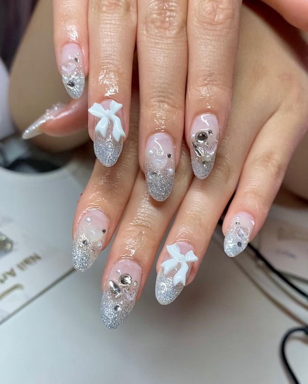From bows to pearls to lots of tulles, coquette nails are all about embracing your most fanciful, romantic side whenever and however you want. the best thing about these designs is that they work on any nail length or shape. this manicure style is among the best choices for romantic girls who love the light academia aesthetic and Bridgerton, so don’t skip them if you like the subtle yet beautiful vibe.