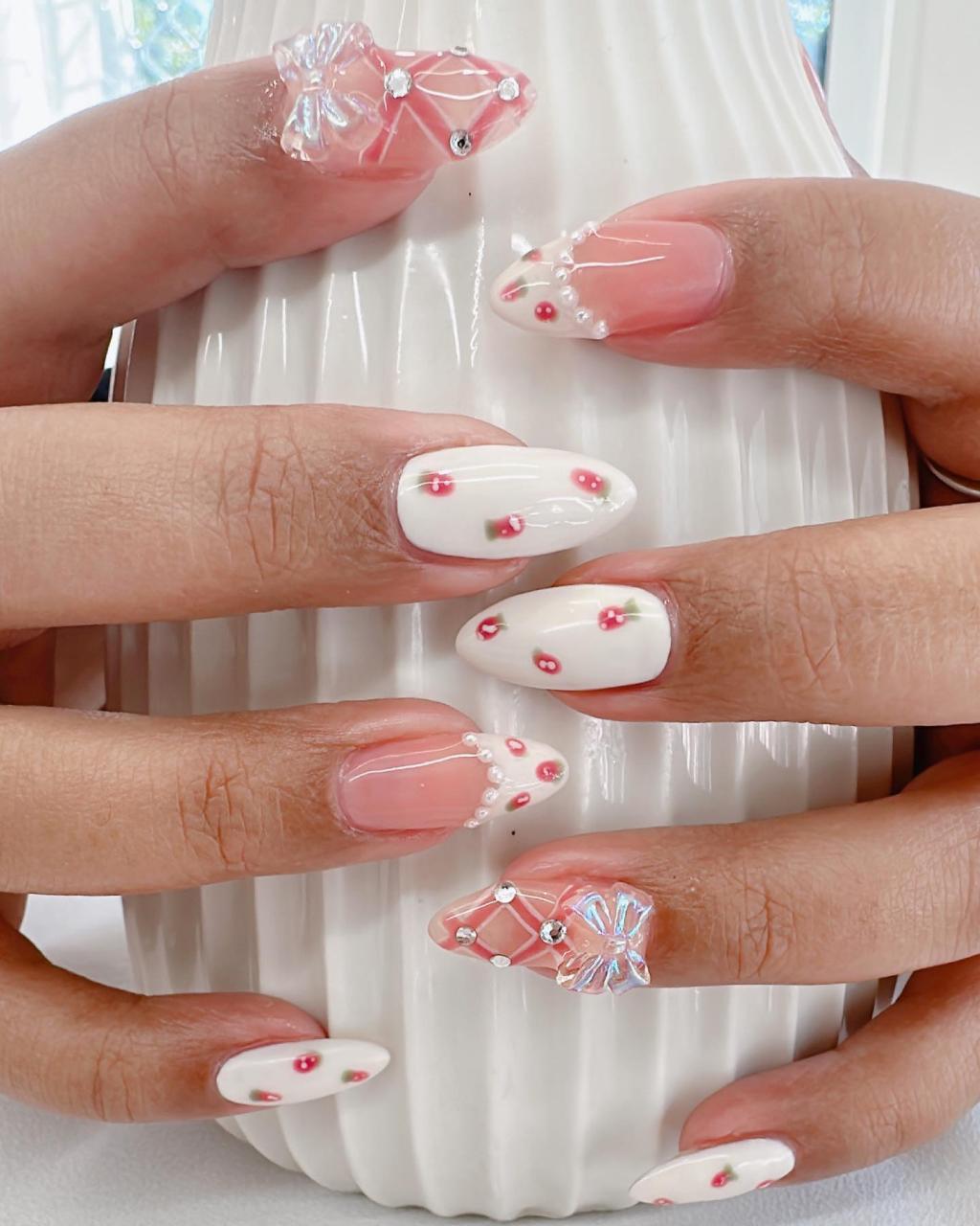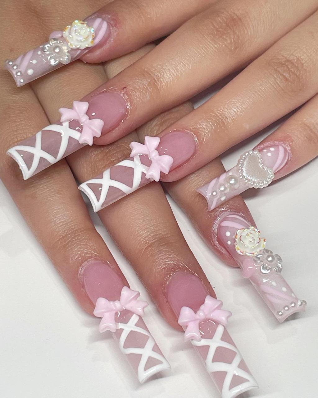 Okay, this trend sounds cool, but what is “coquette,” you ask? to put it simply, coquette means flirty and feminine. Still haven’t had a clue on what does that mean? Don’t worry. You will understand once you see what coquette nails look like. Here is your visual guide on the best coquette nail looks on social media to show you how pretty this new manicure trend can be!