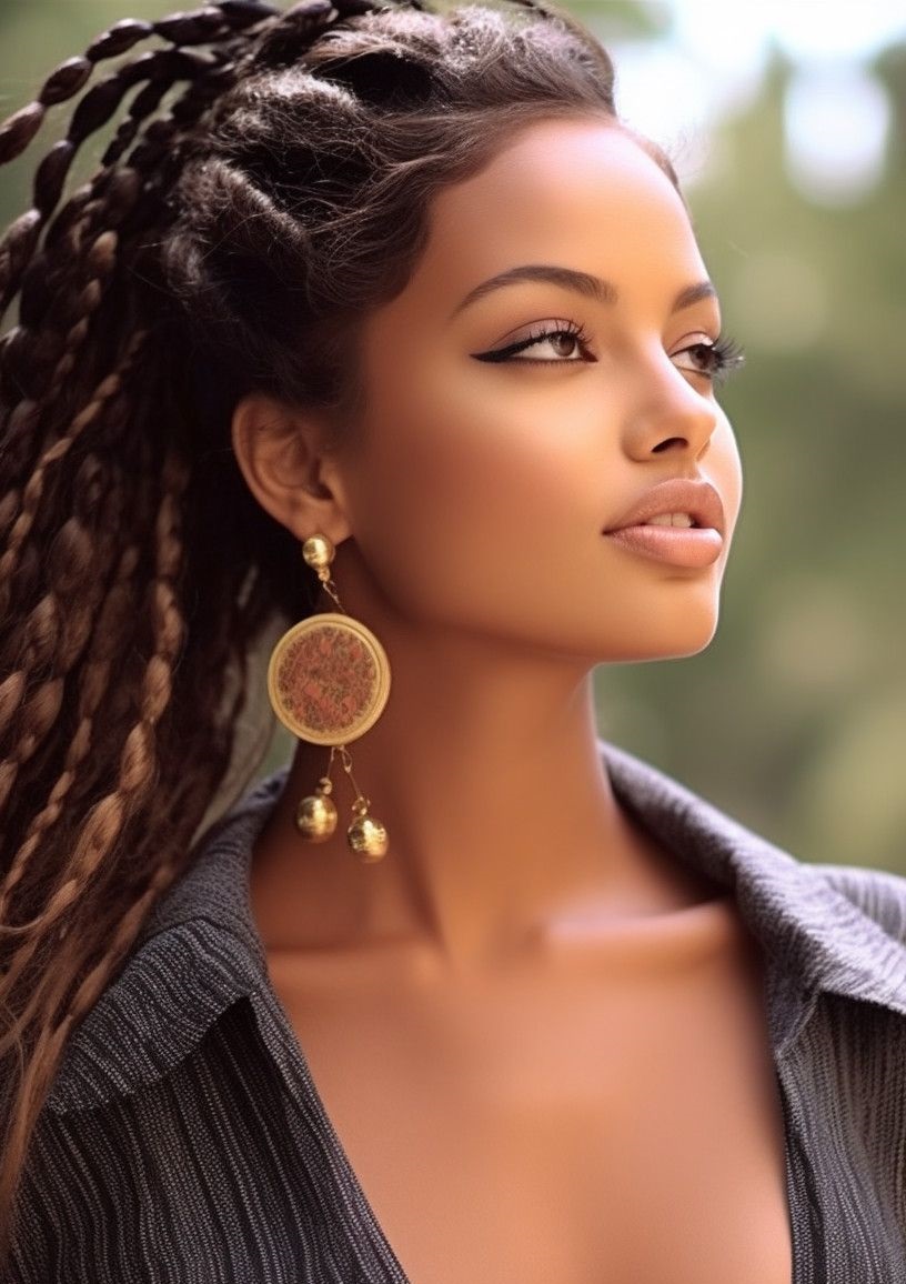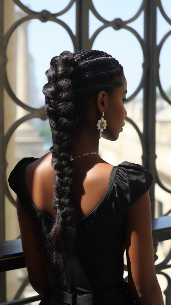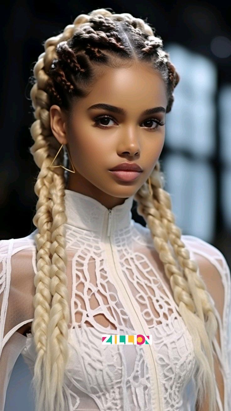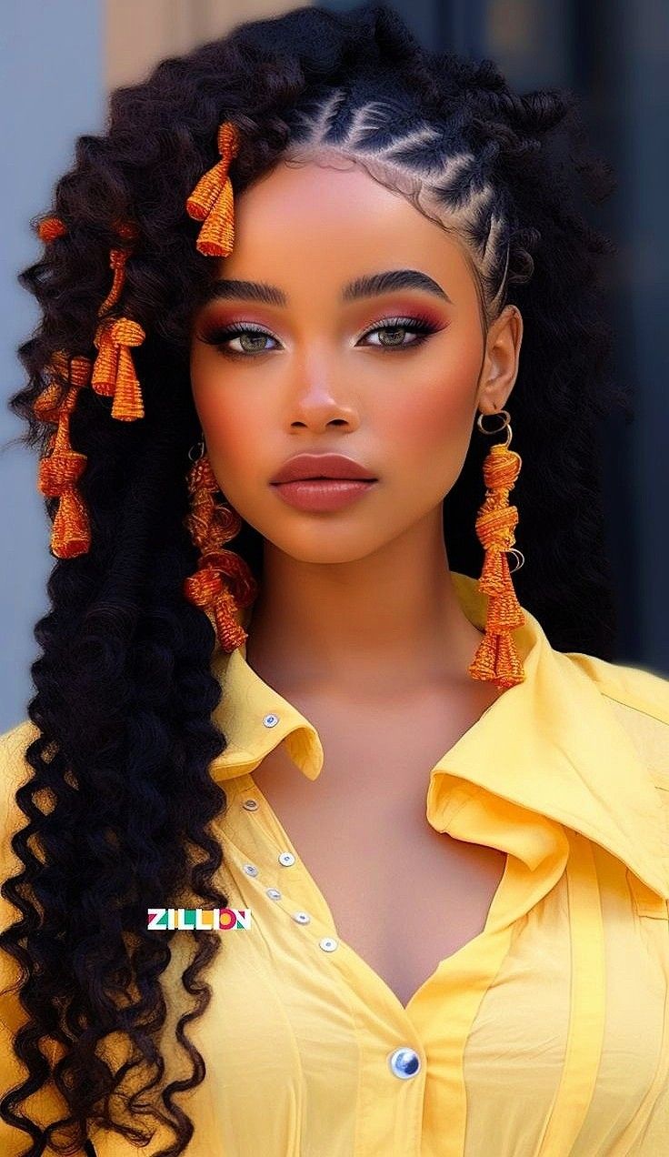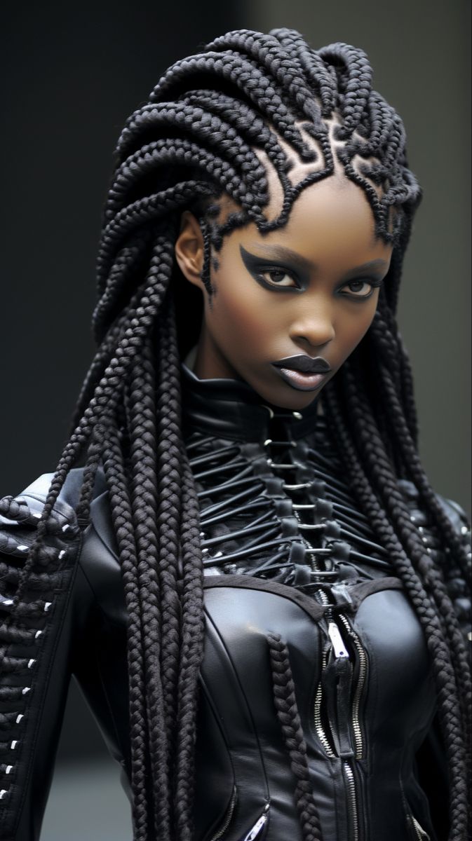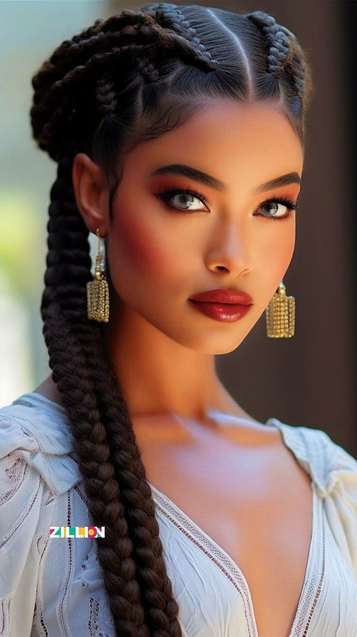 7. Sleek Cornrow Updo: Cornrows styled into a sleek updo are both modern and edgy. This style is great for showcasing your features and pairs well with bold makeup.