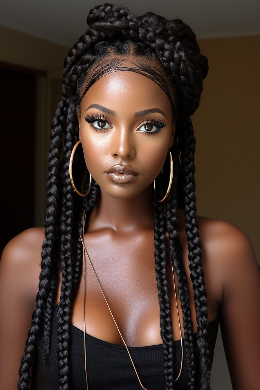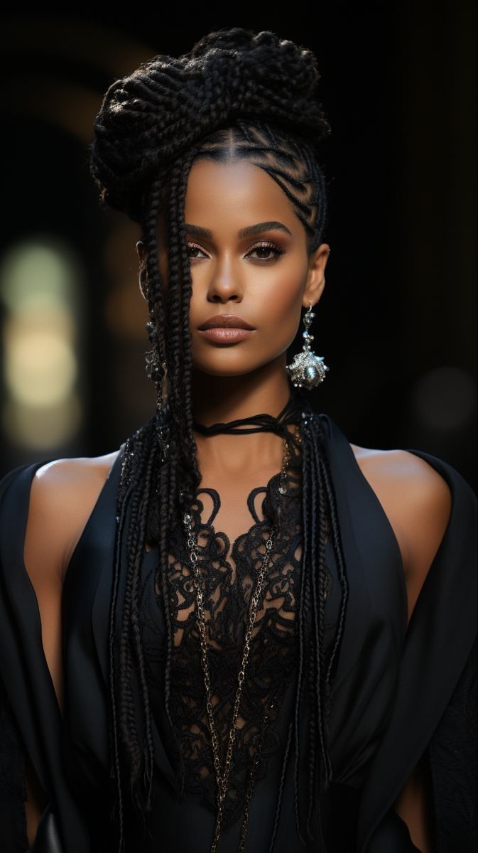 2. Chic Box Braid Bun: Box braids gathered into a high or low bun are not just stylish but also practical. This updo is versatile and works for both a night out and a day at the office.