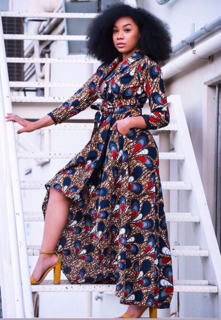 17. Ankara Shirt Dress: An Ankara shirt dress is a versatile choice that can be belted for a cinched waist or worn loose for a relaxed vibe.