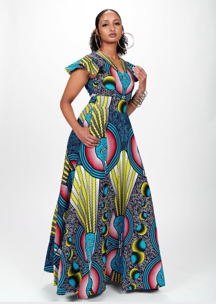 2. Off-Shoulder Maxi Dress: An off-shoulder Ankara maxi dress with bold prints can make a bold statement while keeping you comfortable.