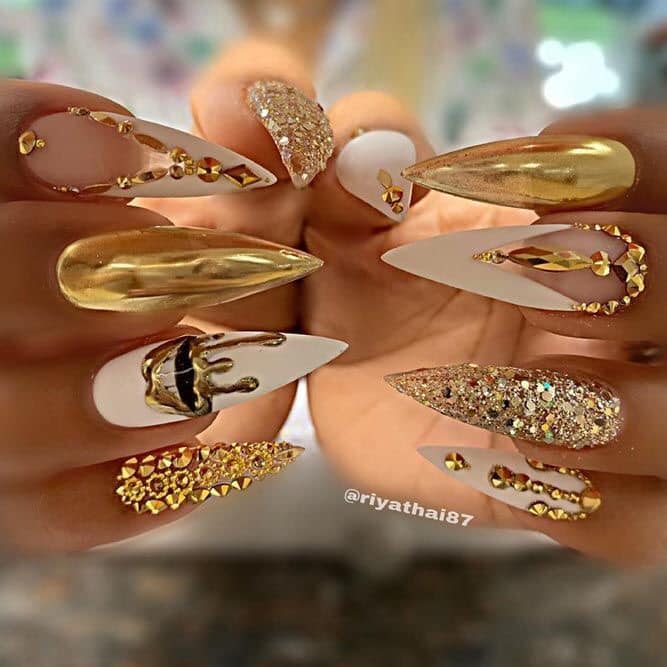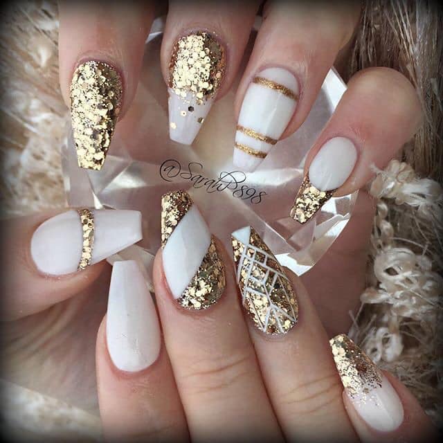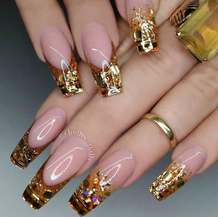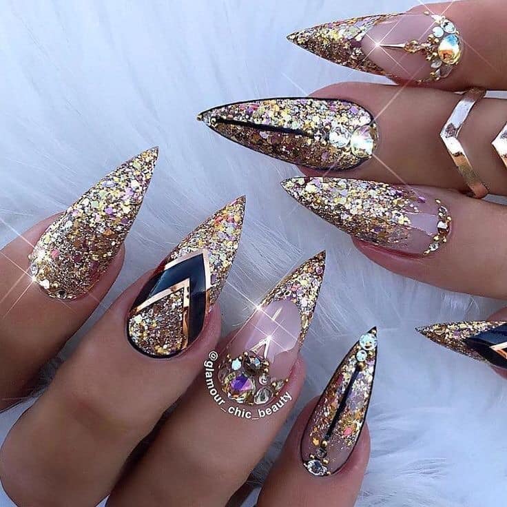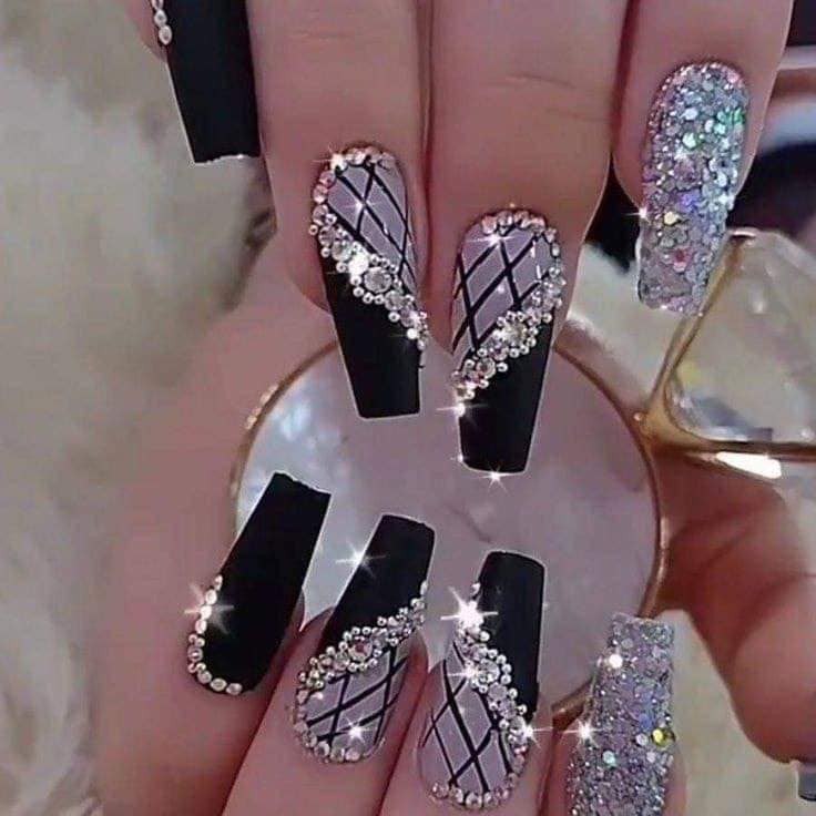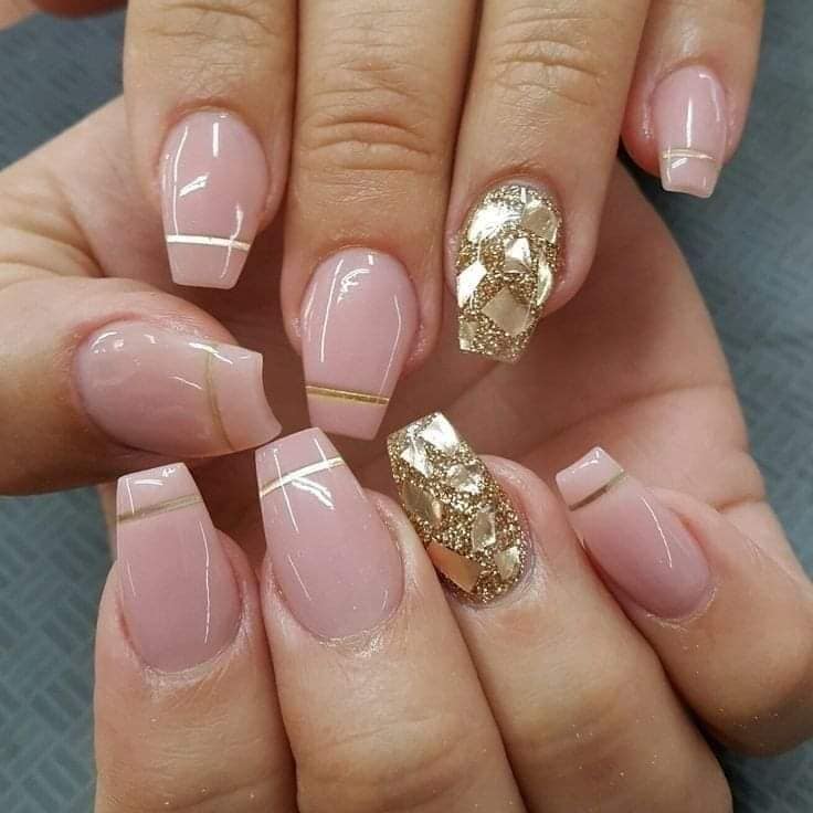 - Geometric nails: Geometric nails are a trendy and modern option. You can choose from a variety of geometric shapes, and you can even add metallic or glitter accents.