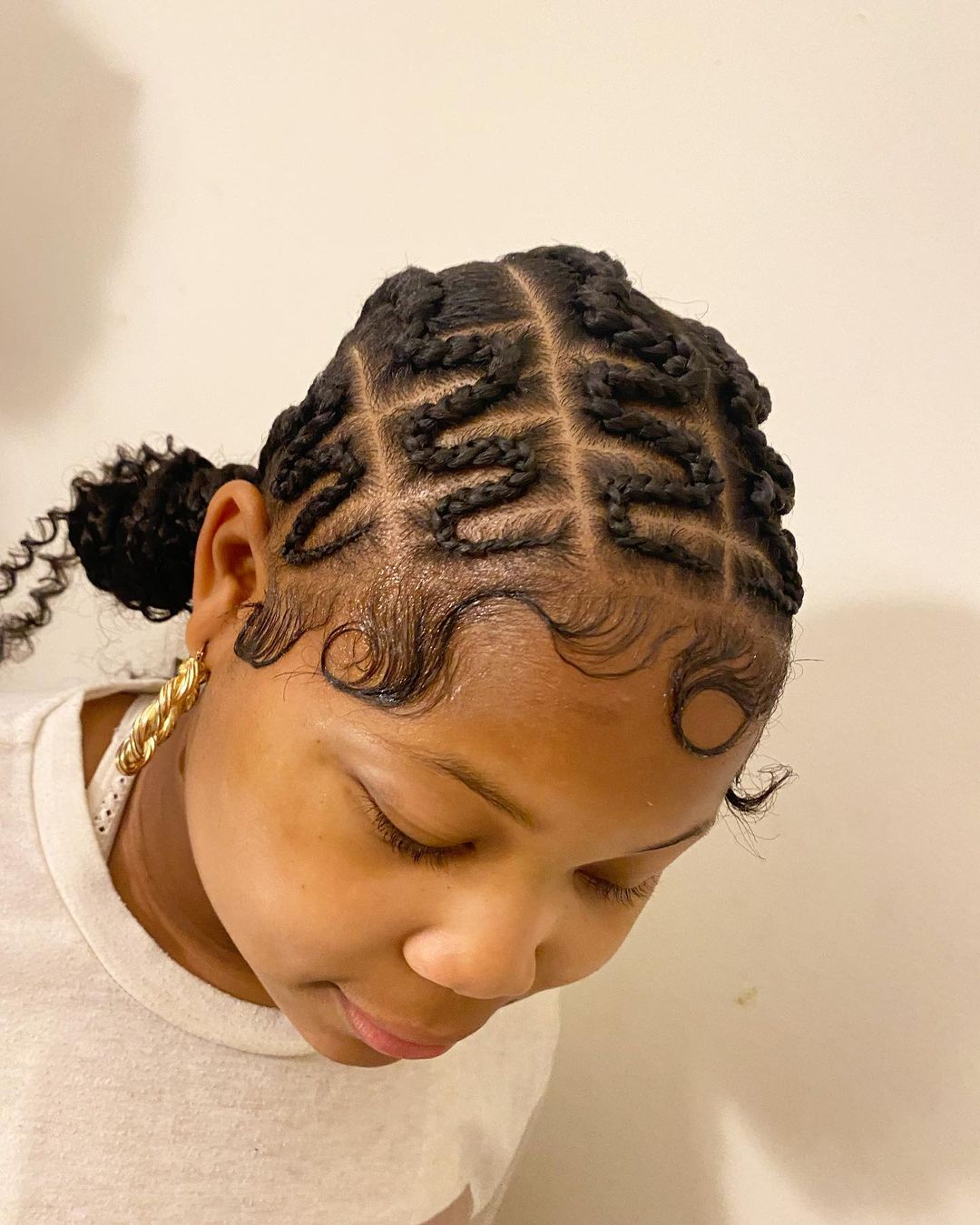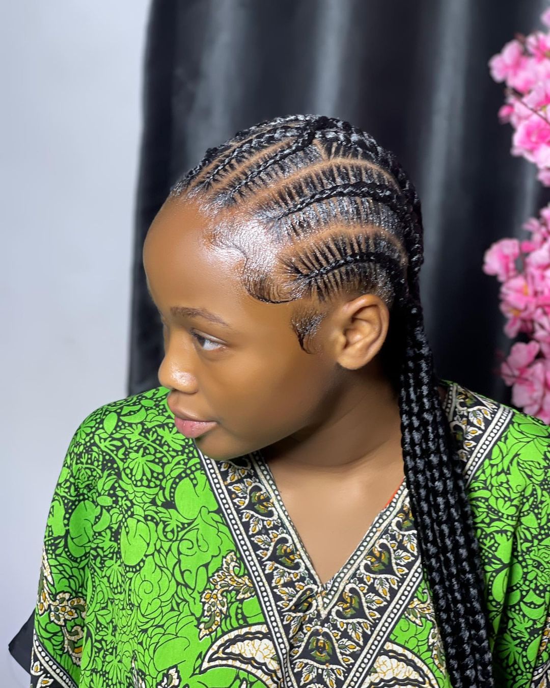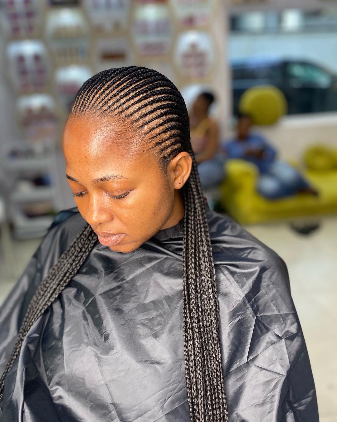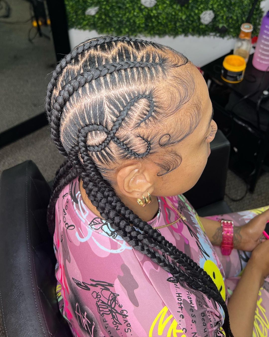 Embrace an artistic and intricate look with geometric patterns in your straight back braids, showcasing precision and attention to detail.
