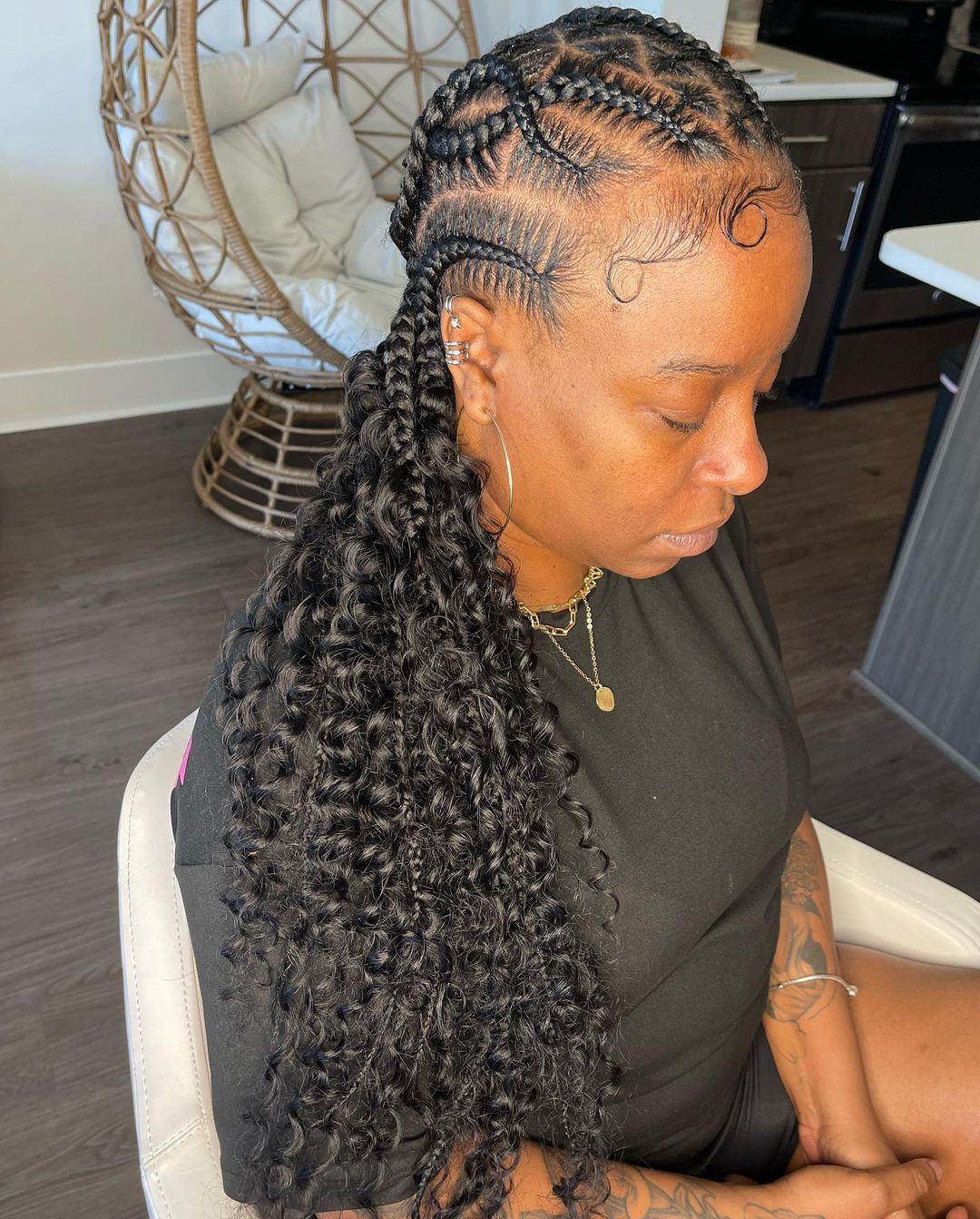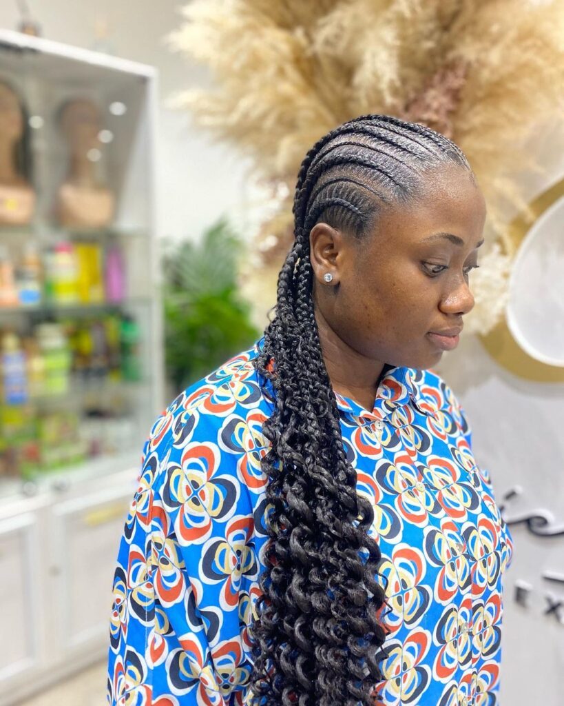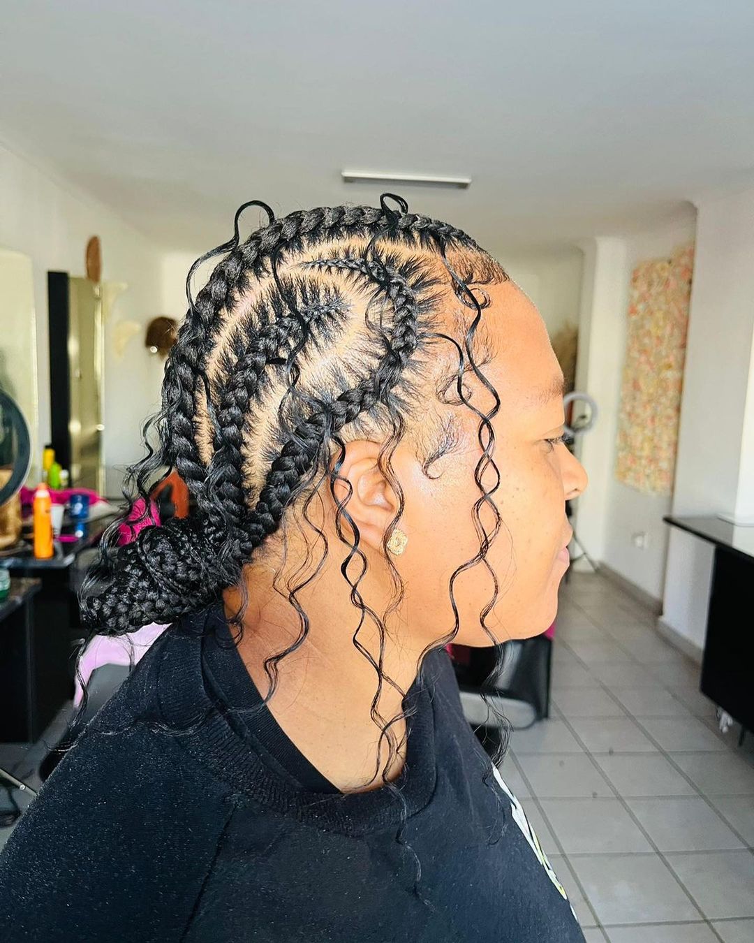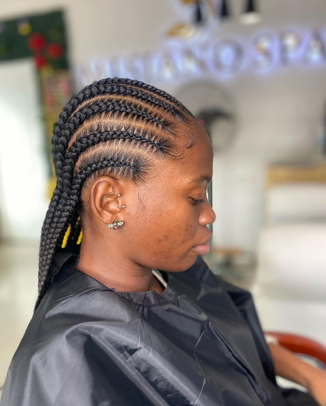 Add a modern edge to your straight back braids by incorporating curved partings, elevating the style with a contemporary touch.