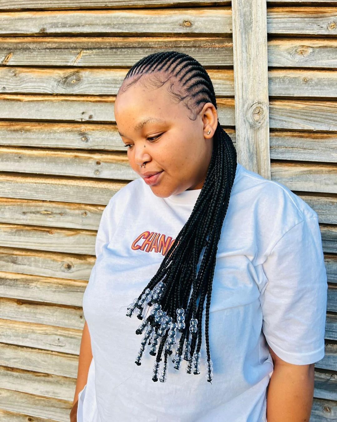 Enhance your thin straight back braids with beads for a touch of subtle glamour, adding an elegant flair to your overall look.