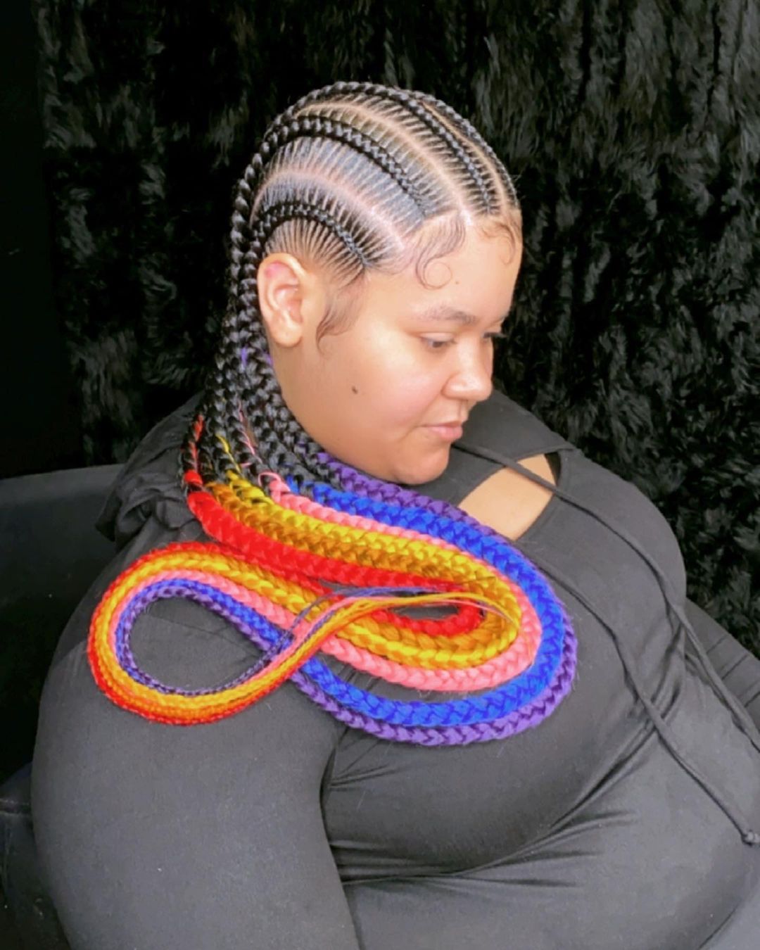 7. “Straight Back Braids with Colored Extensions: Playful Vibes”: