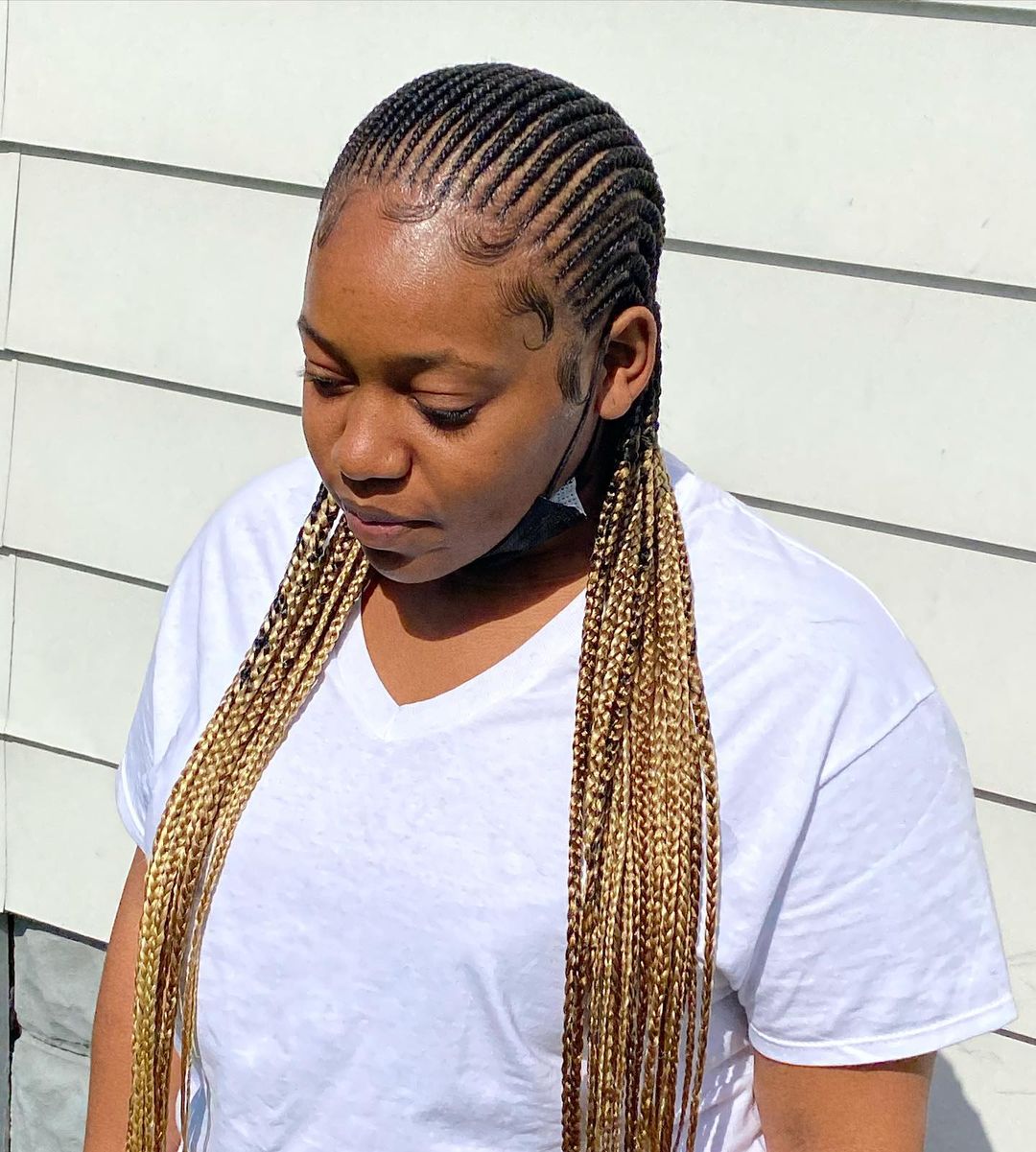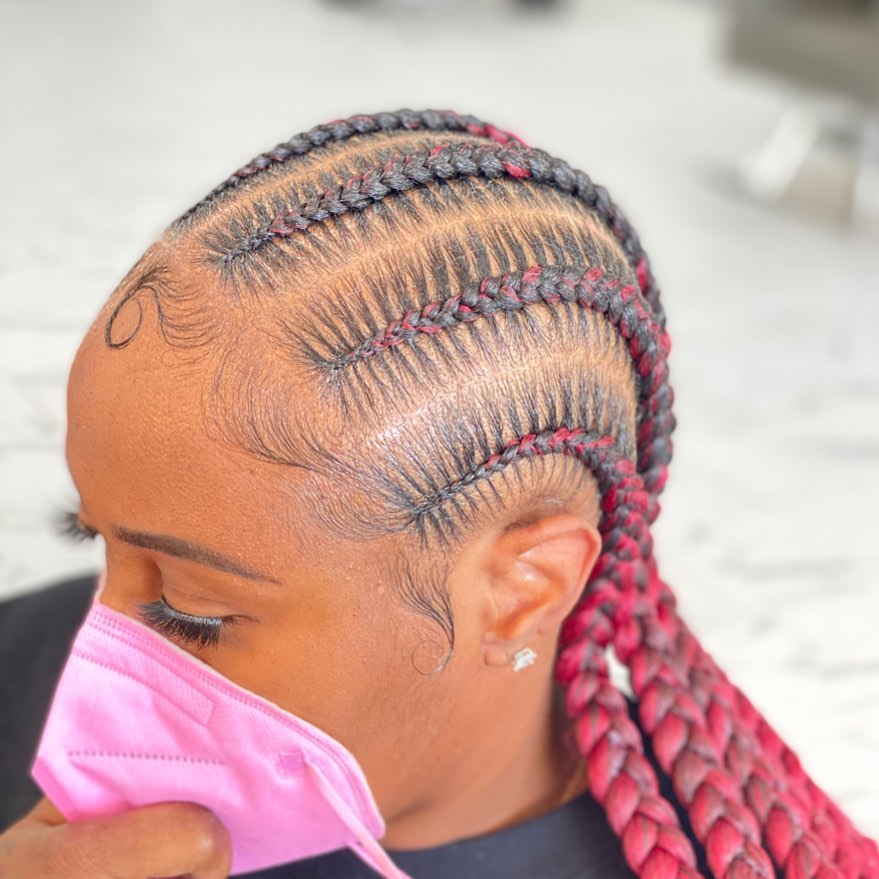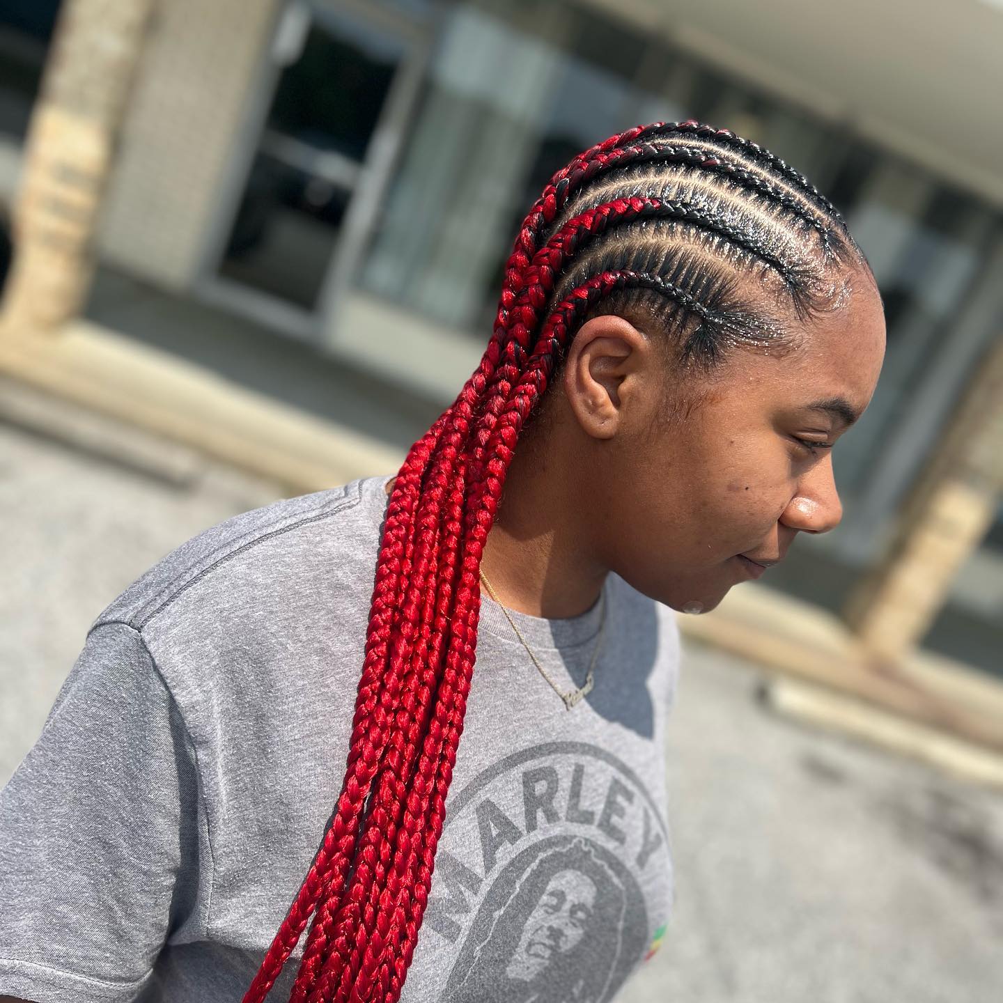 Infuse playfulness into your straight back braids by using colored extensions, expressing your personality with vibrant hues.