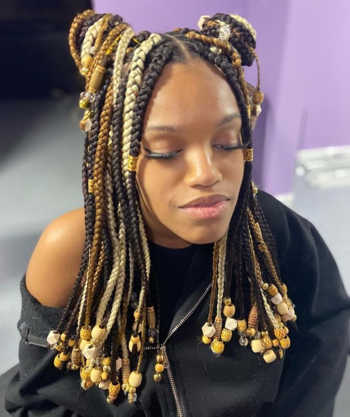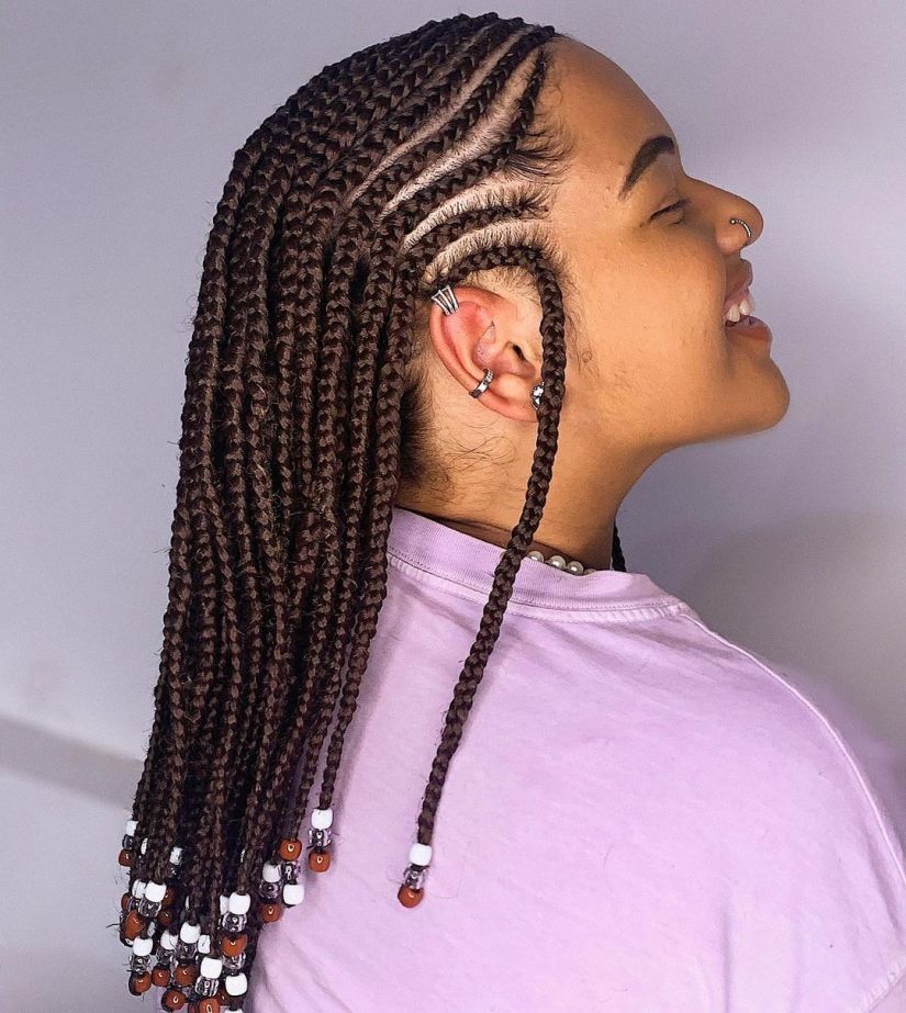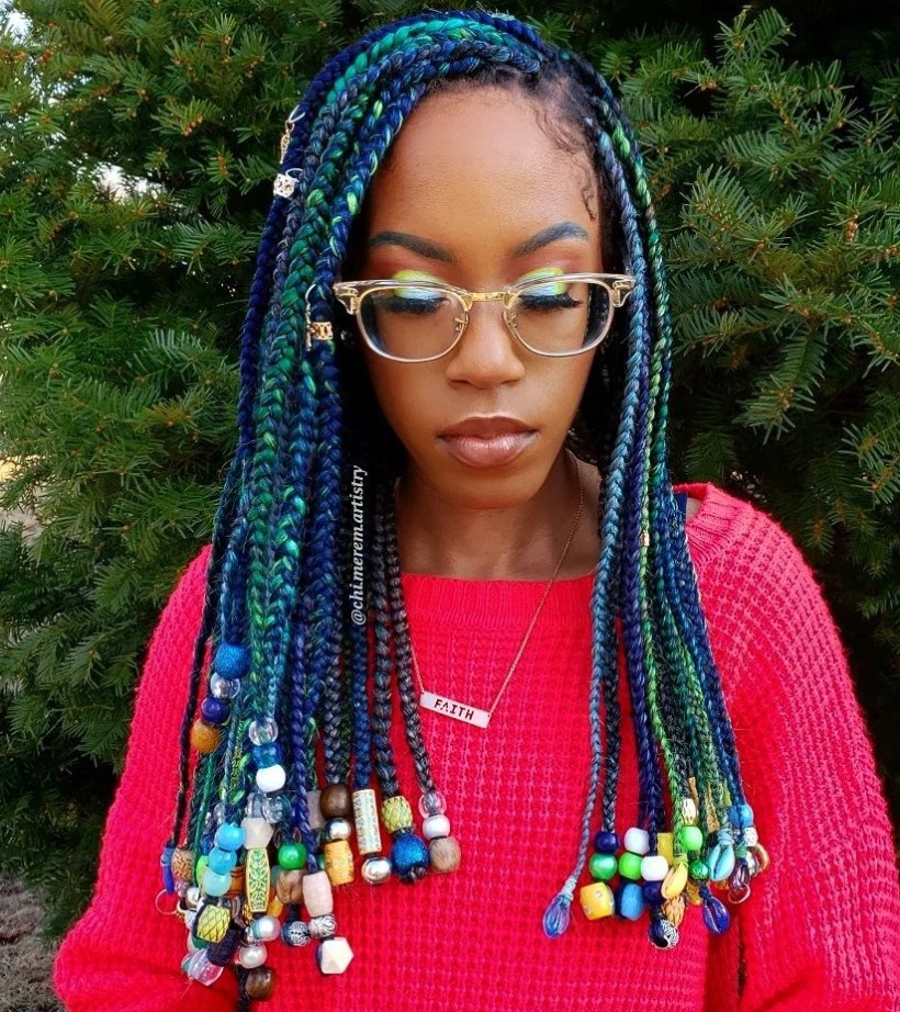 3. Boho-Chic Box Braids with Beads Combine the charm of bohemian aesthetics with box braids adorned with beads, celebrating a fusion of cultures and styles.