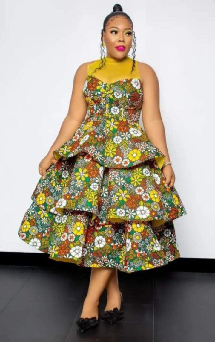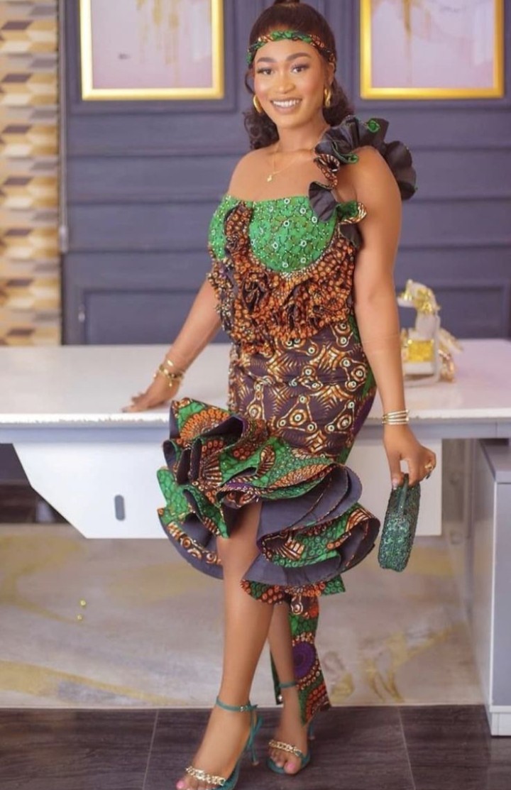 6. Cold Shoulder Ankara Midi Dress: Stay on-trend with a cold shoulder Ankara midi dress. The cold shoulder detail adds a contemporary twist to the traditional Ankara gown.