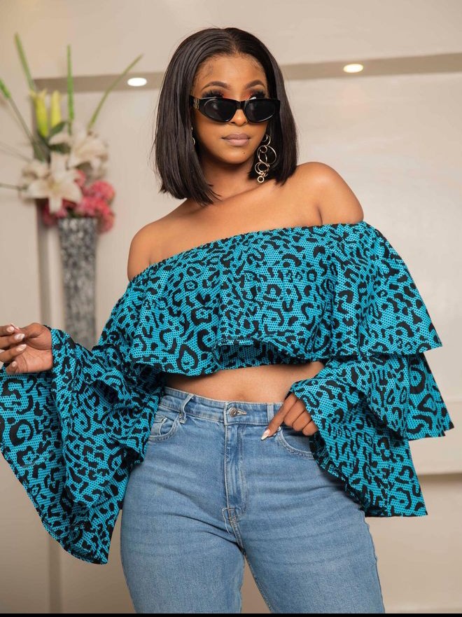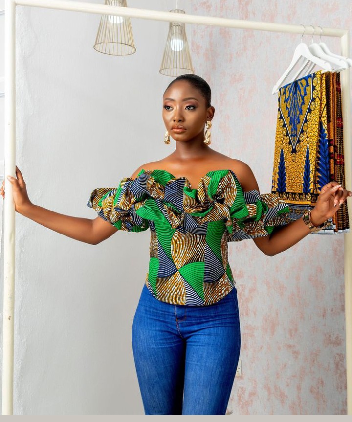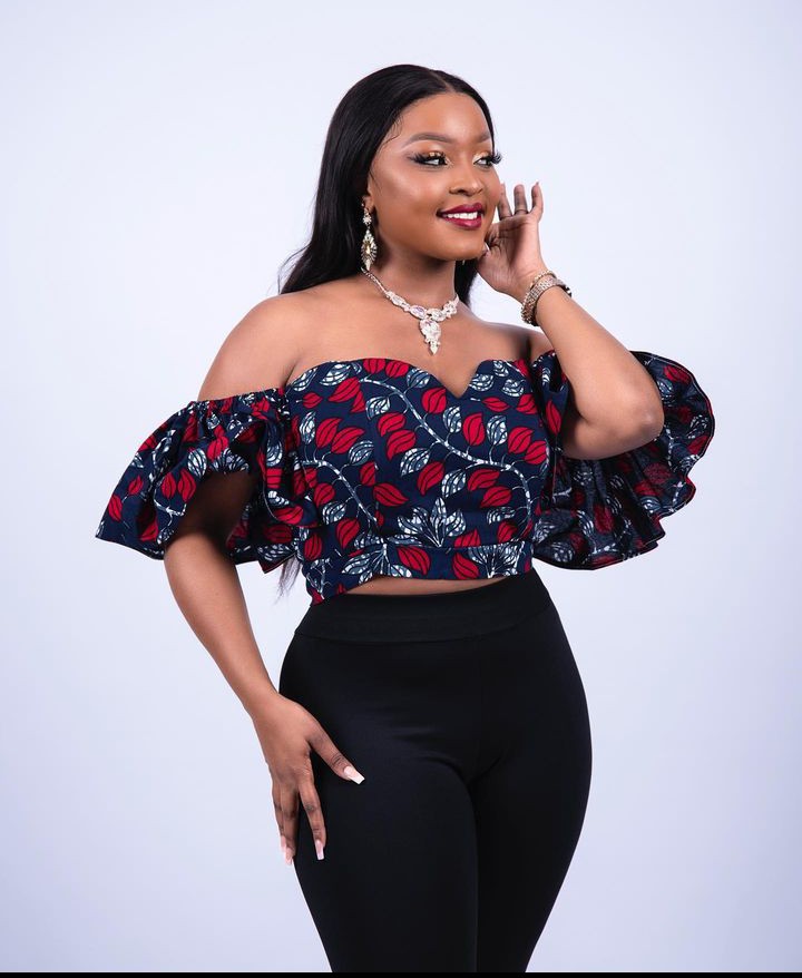 3. Ruffled Delight Add playful movement with a ruffled Ankara top that offers a dynamic and eye-catching element. This style brings a touch of whimsy to your ensemble.