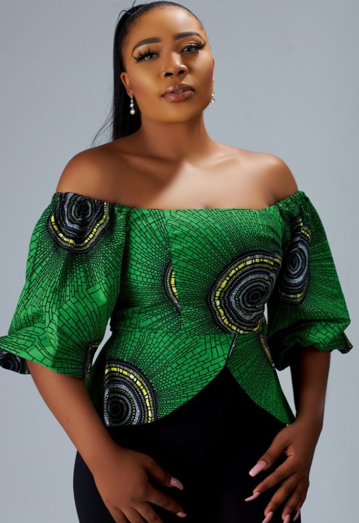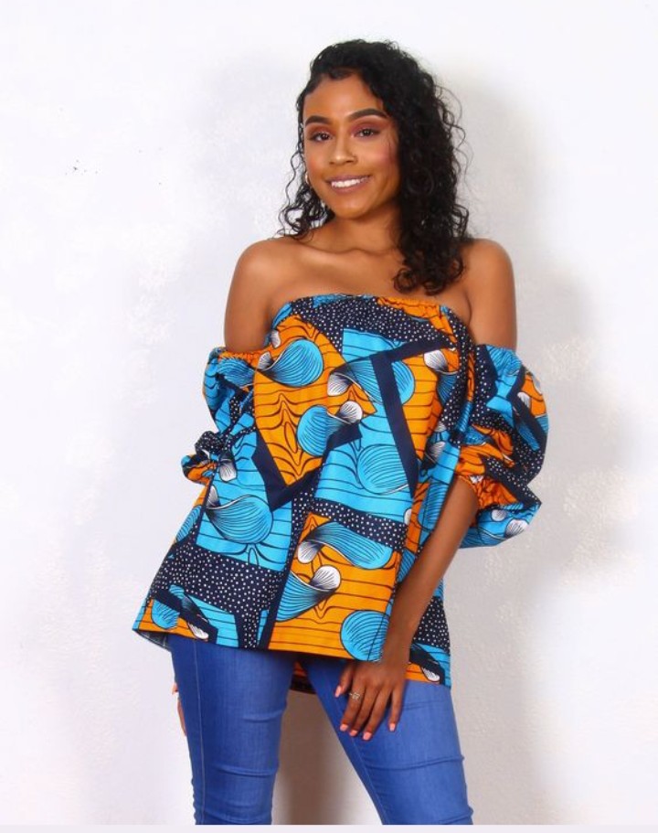 2. Off-Shoulder Elegance Exude sophistication with an off-shoulder Ankara blouse that showcases your shoulders. This neckline beautifully complements trousers, creating a balanced and stylish look.