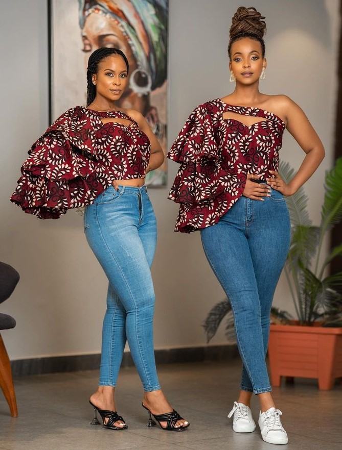 11. Asymmetric Hemlines Experiment with asymmetric hemlines that add a dynamic and contemporary twist to your Ankara top. This feature offers movement and visual interest.
