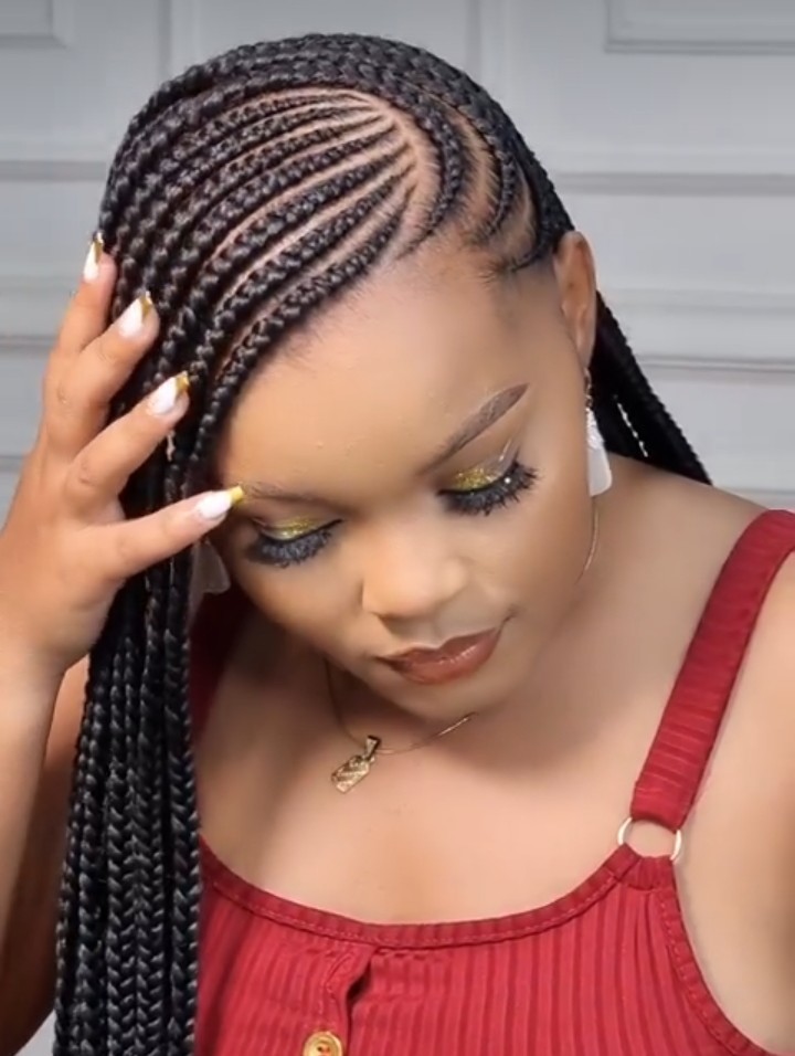 - Side-Swept Cornrows: Add a touch of glamour to your cornrows by sweeping them to one side. This style works well with both thick and thin braids.