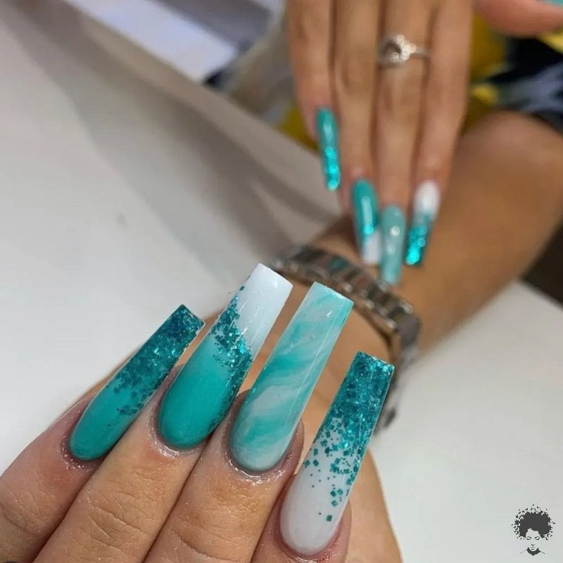 Les couleurs d’ongles en marbre les plus populaires sont les ongles en marbre rose quartz, gris, turquoise, menthe, blanc et noir.