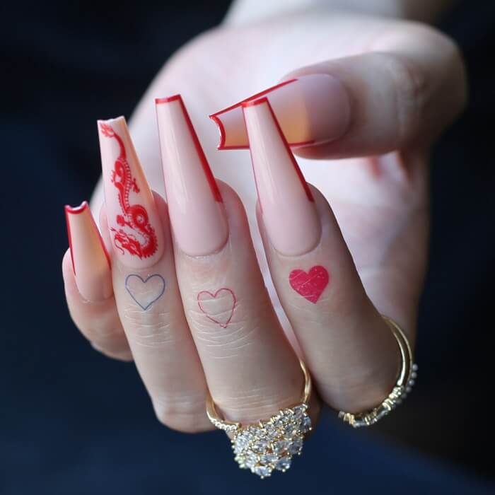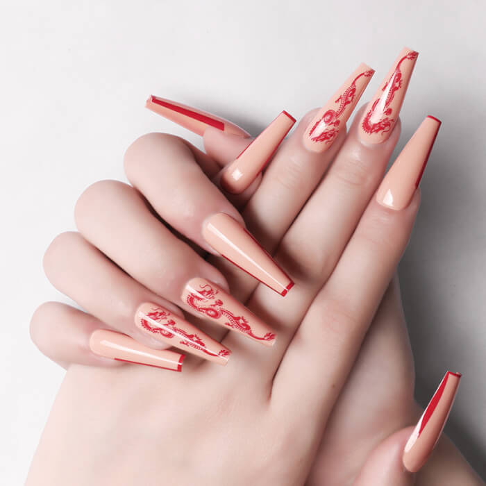 For trendy and stylist girls, red is always a sexy color and top choice when having a decision to attract attention from others. Besides choosing a red lipstick, as usual, you can totally nail it down with a beautiful red coffin nail set.