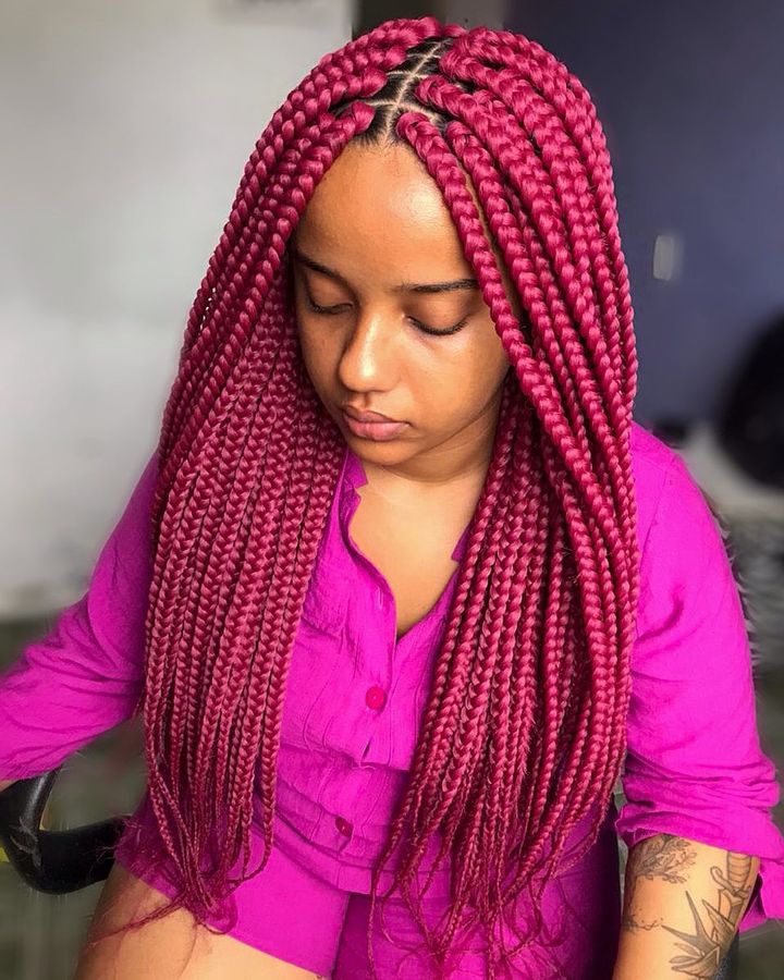 5. Jumbo Braids with Colorful Accents: Infuse vibrancy into your look by adding colorful extensions or beads to your jumbo box braids.