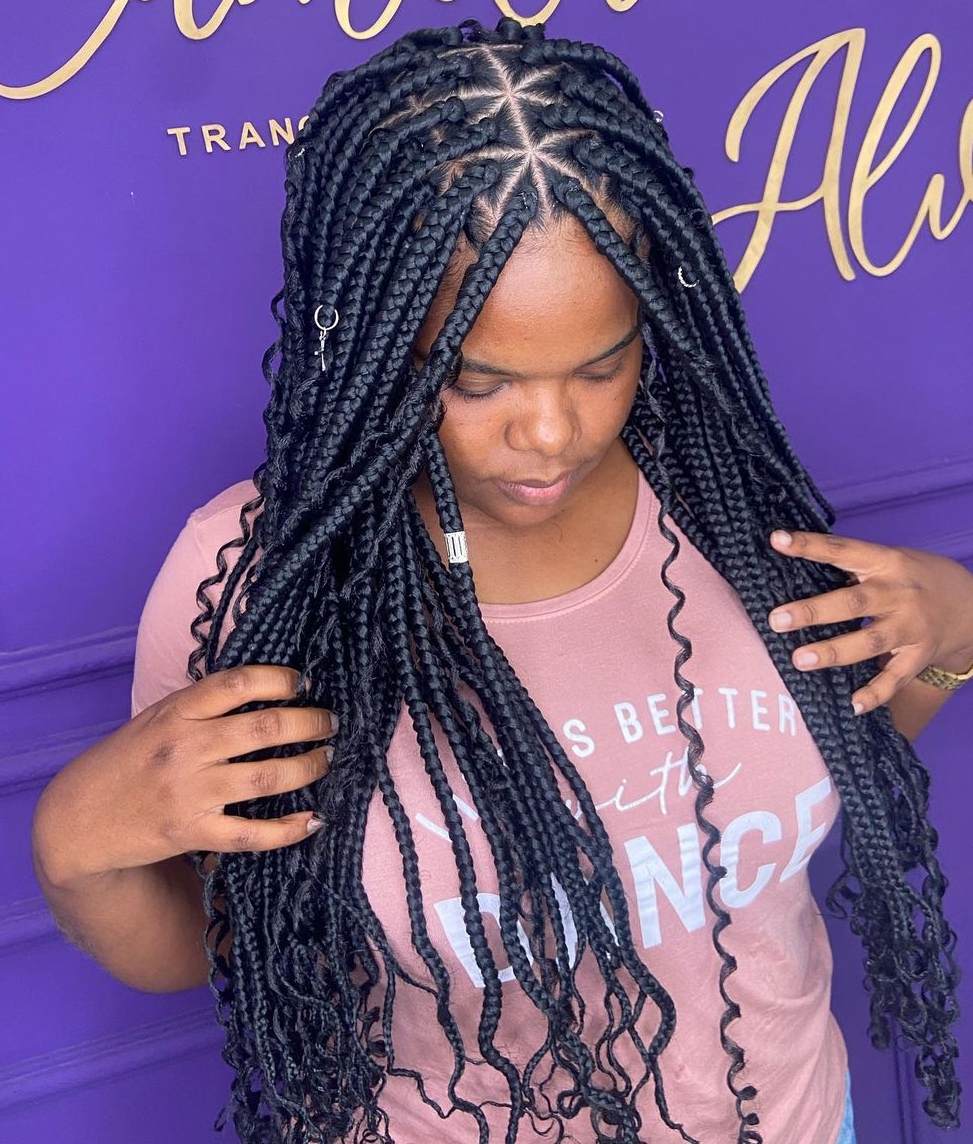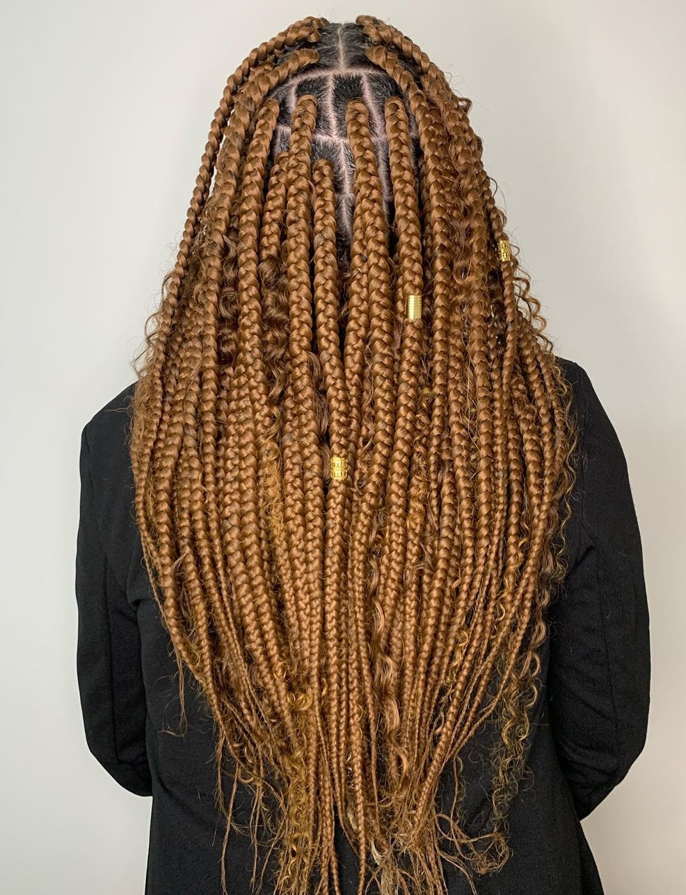 18. Jumbo Braids with Curled Ends: Add a touch of glamour to your jumbo box braids by curling the ends for a bouncy and sophisticated effect.