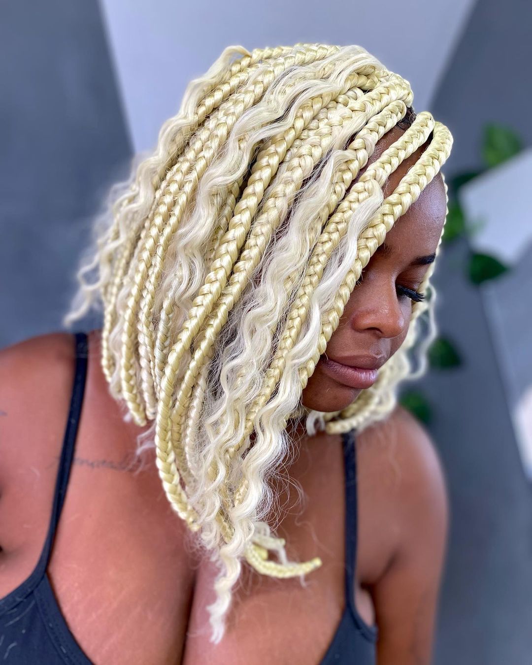30. Jumbo Braids Layered Bob: Experiment with texture and dimension by opting for layered jumbo box braids that offer a unique twist on the classic bob.