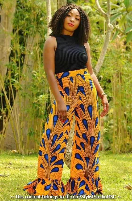 1. High-Waisted Ankara Palazzo Trousers: