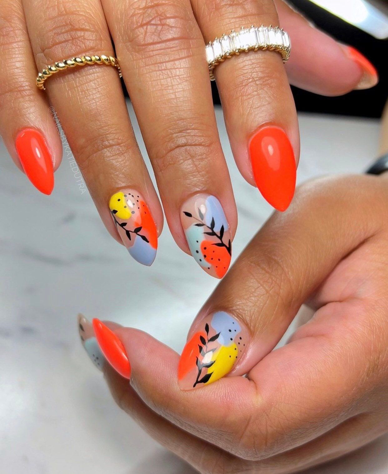 Unleash your creativity with abstract nail art. Mix and match vibrant colors, create bold brush strokes, or experiment with negative space designs. Abstract nail art allows you to express your artistic side and embrace the freedom of self-expression. Don’t be afraid to let your imagination run wild and create unique and eye-catching designs.