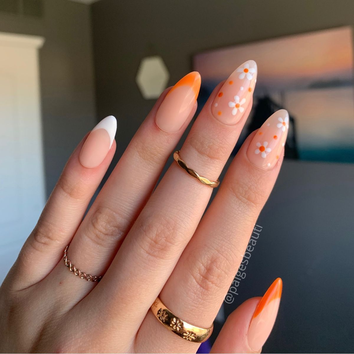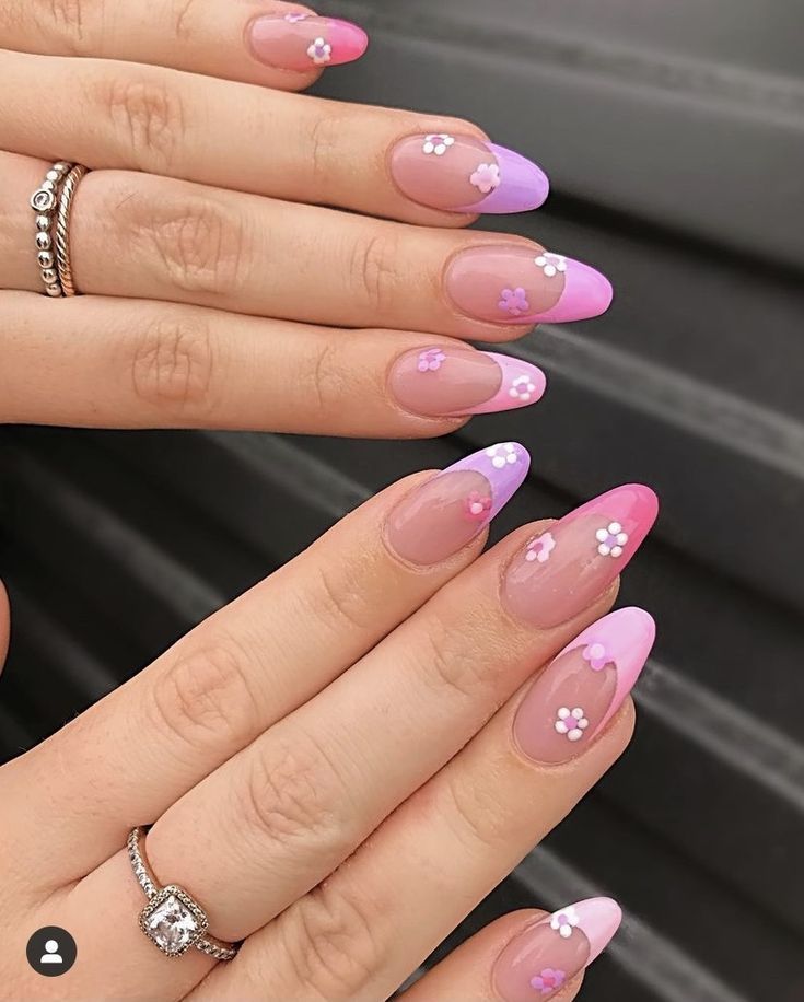 Create a mesmerizing ombré effect on your nails by blending two or more complementing shades. Experiment with soft pastels like baby blue and pale yellow or opt for bolder combinations like coral and peach. The gradient ombré technique adds depth and dimension to your nails, capturing the essence of a beautiful spring sunset.