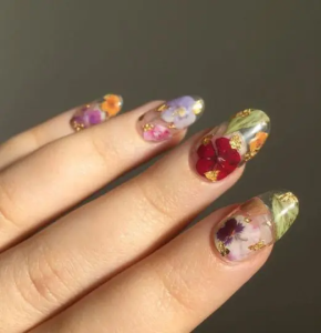 Welcome the blooming season with delicate floral accents on your nails. Choose pastel shades like blush pink, lavender, or mint green as your base color and add intricate floral designs using fine brushes or nail stamping techniques. These dainty florals will instantly brighten up your manicure and exude a feminine and fresh vibe.