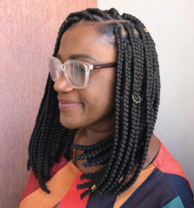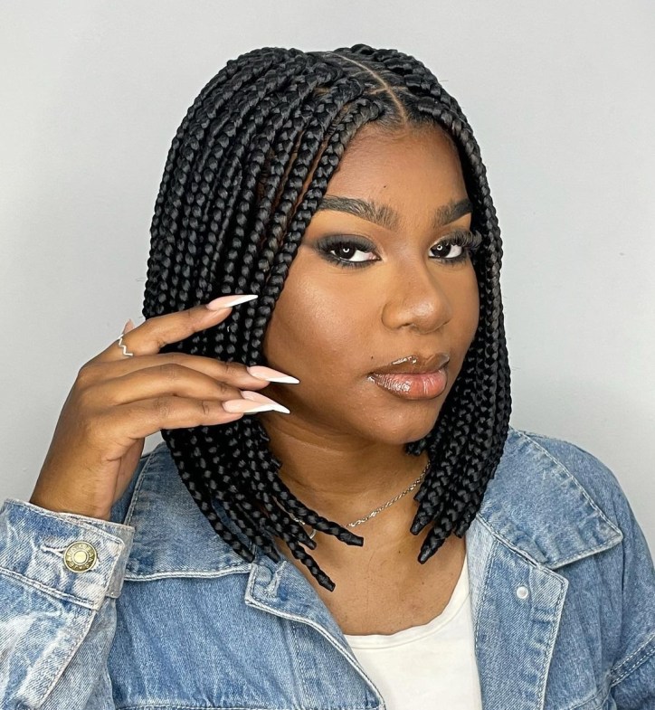 Opt for a chic and modern look with bob-length medium box braids. This style is easy to manage and exudes confidence.