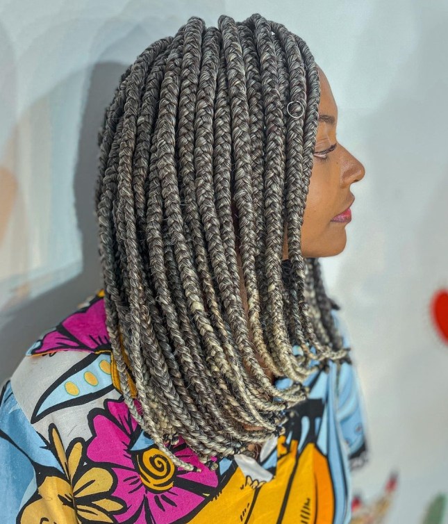 Play with texture and volume by opting for chunky medium box braids. These braids create a bold and statement-making appearance.
