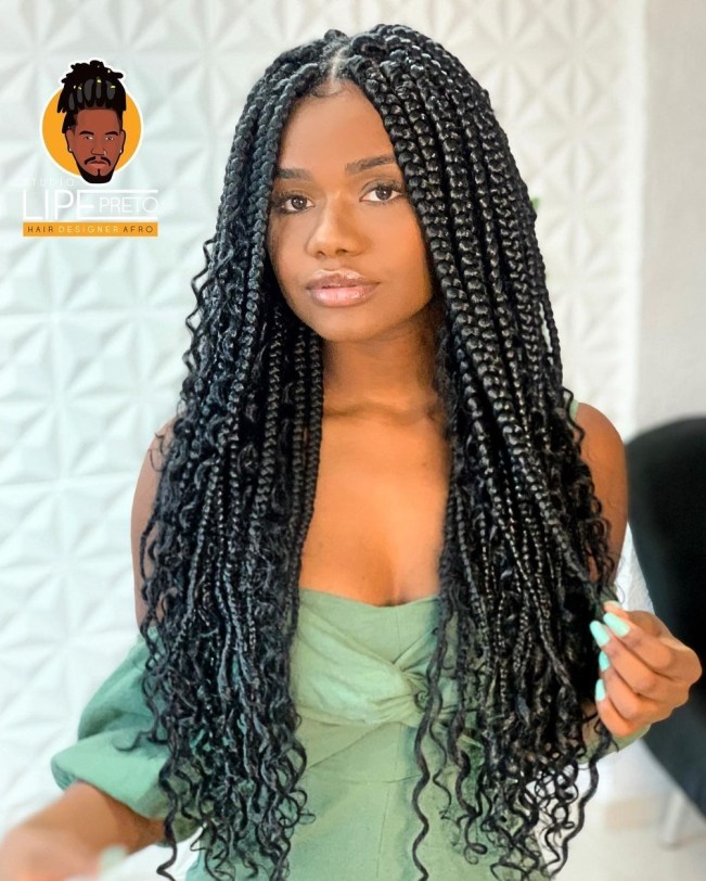 Combine the best of both worlds with a half-up half-down medium box braids style. This versatile look offers a playful twist on traditional braids.